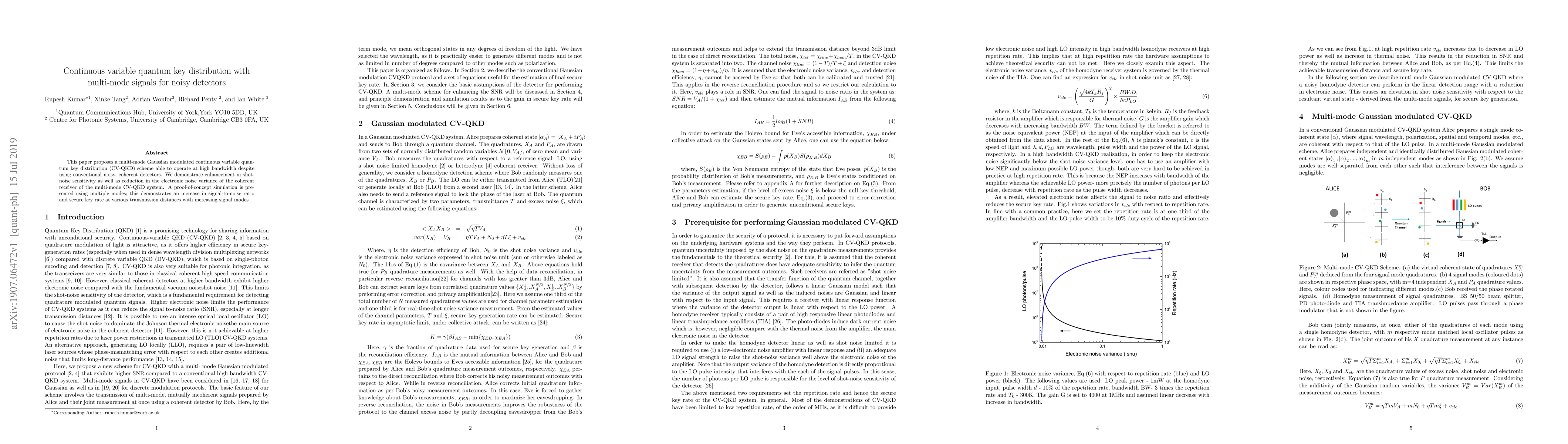 This paper proposes a multi-mode Gaussian modulated continuous variable quantum key distribution (CV-QKD) scheme that enhances shotnoise sensitivity and reduces electronic noise variance in noisy detectors, achieving higher bandwidth and secure key rates through simulation. The proof-of-concept demonstrates improved performance with more signal modes.