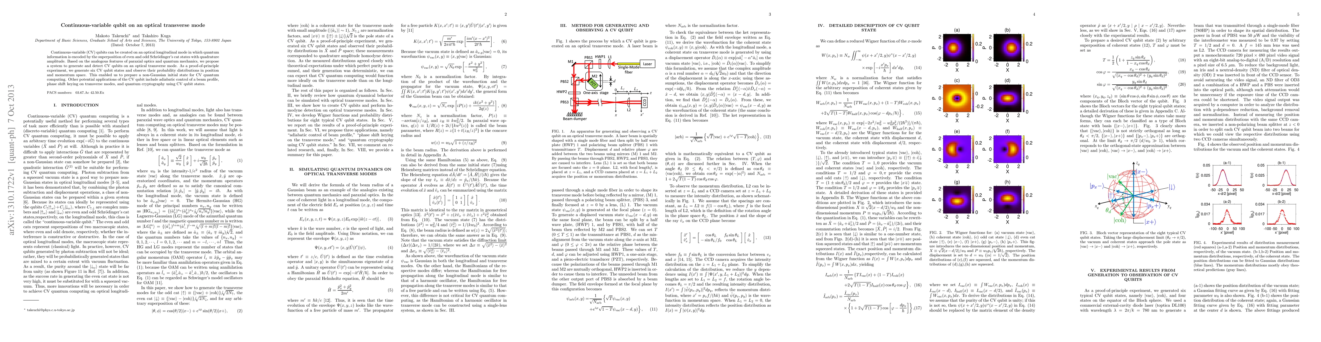 The paper introduces a method to generate and observe CV qubits on optical transverse modes, providing a practical alternative to longitudinal modes for quantum information processing.