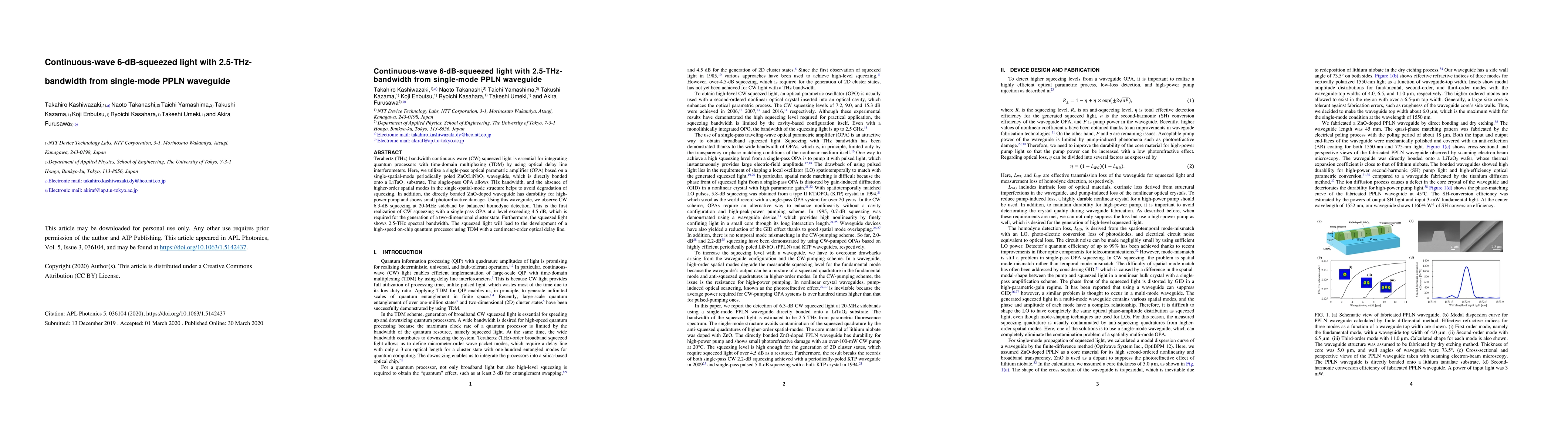 Researchers achieved continuous-wave 6.3-dB squeezing with a 2.5-THz bandwidth from a single-mode PPLN waveguide, enabling the development of high-speed on-chip quantum processors using time-domain multiplexing.