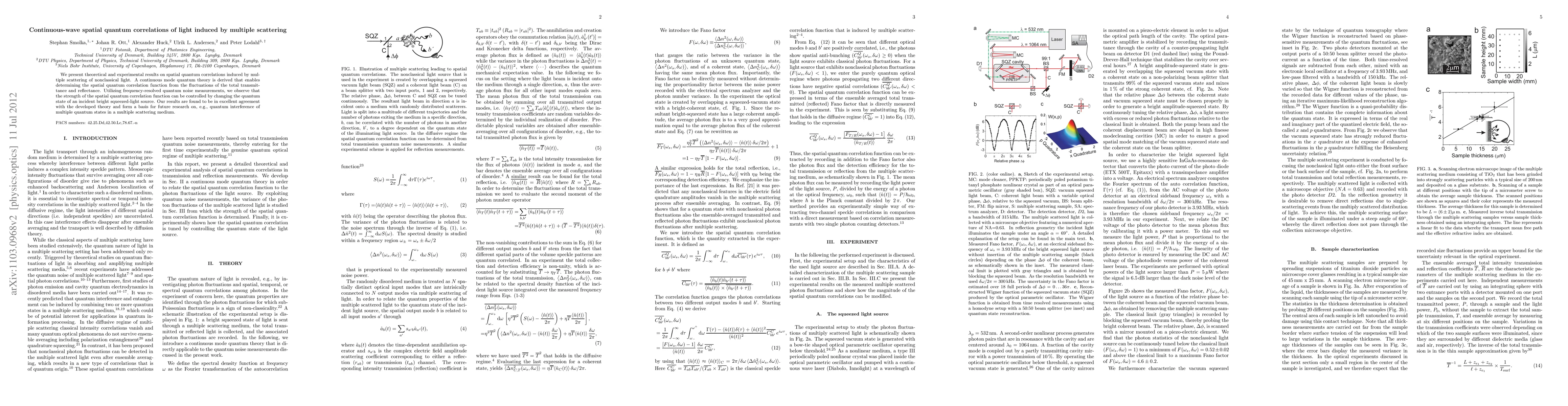 This paper presents theoretical and experimental results on spatial quantum correlations induced by multiple scattering of nonclassical light, demonstrating that the strength of these correlations can be controlled by altering the quantum state of a bright squeezed-light source, with results aligning well with the derived continuous-mode quantum theory.