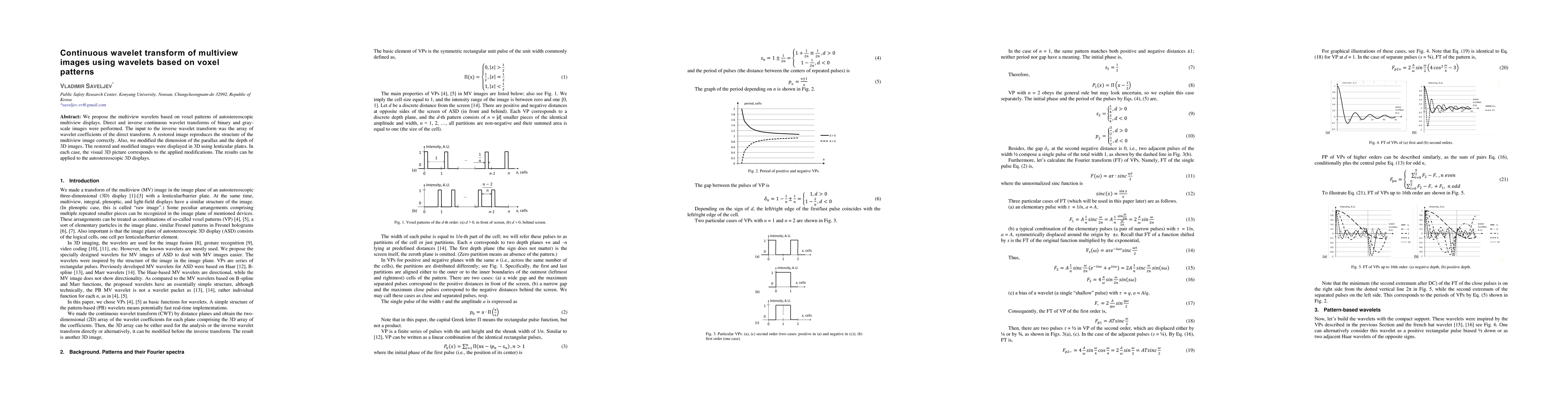 We propose the multiview wavelets based on voxel patterns of autostereoscopic multiview displays. Direct and inverse continuous wavelet transforms of binary and gray-scale images were performed. The input to the inverse wavelet transform was the array of wavelet coefficients of the direct transform. A restored image reproduces the structure of the multiview image correctly. Also, we modified the dimension of the parallax and the depth of 3D images. The restored and modified images were displayed in 3D using lenticular plates. In each case, the visual 3D picture corresponds to the applied modifications. The results can be applied to the autostereoscopic 3D displays.