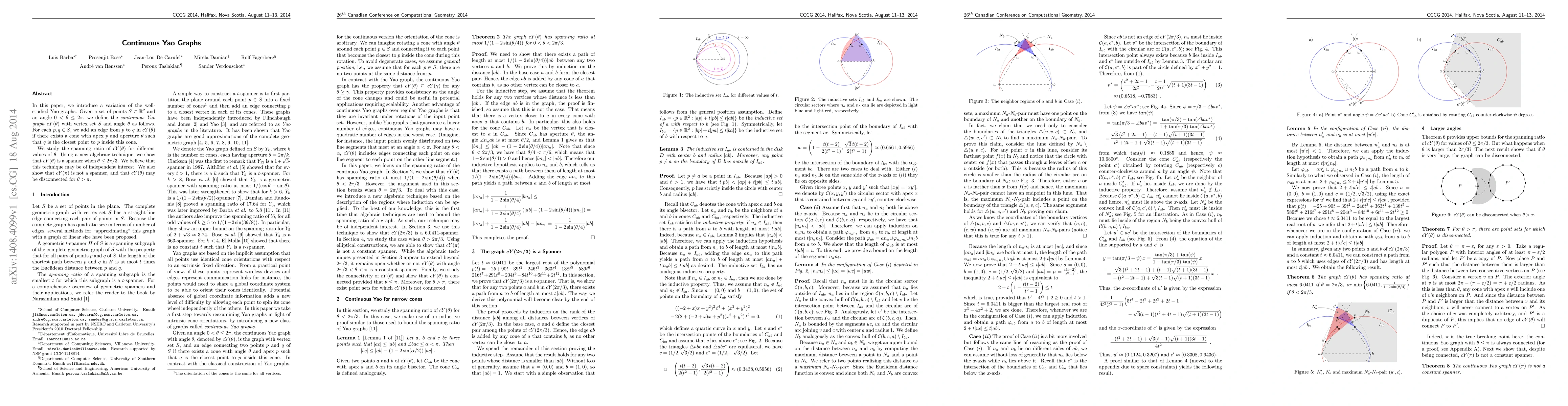 This paper introduces continuous Yao graphs, a variant of Yao graphs, where edges are formed based on cones with a given aperture angle. The study shows that these graphs are spanners when the angle is less than or equal to 2π/3, and they may become disconnected or non-spanners for larger angles.