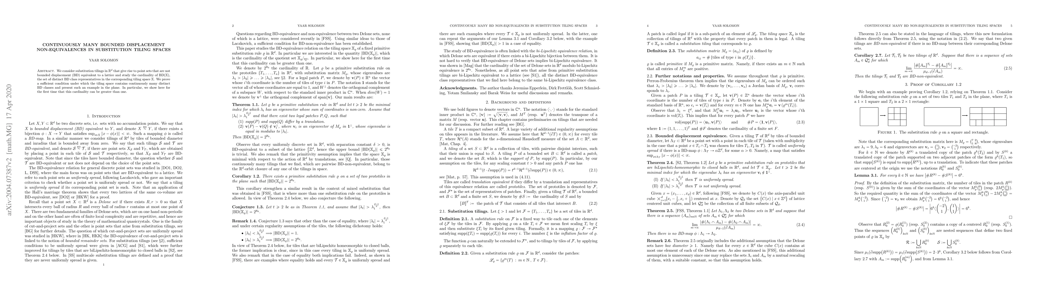 We consider substitution tilings in R^d that give rise to point sets that are not bounded displacement (BD) equivalent to a lattice and study the cardinality of BD(X), the set of distinct BD class representatives in the corresponding tiling space X. We prove a sufficient condition under which the tiling space contains continuously many distinct BD classes and present such an example in the plane. In particular, we show here for the first time that this cardinality can be greater than one.