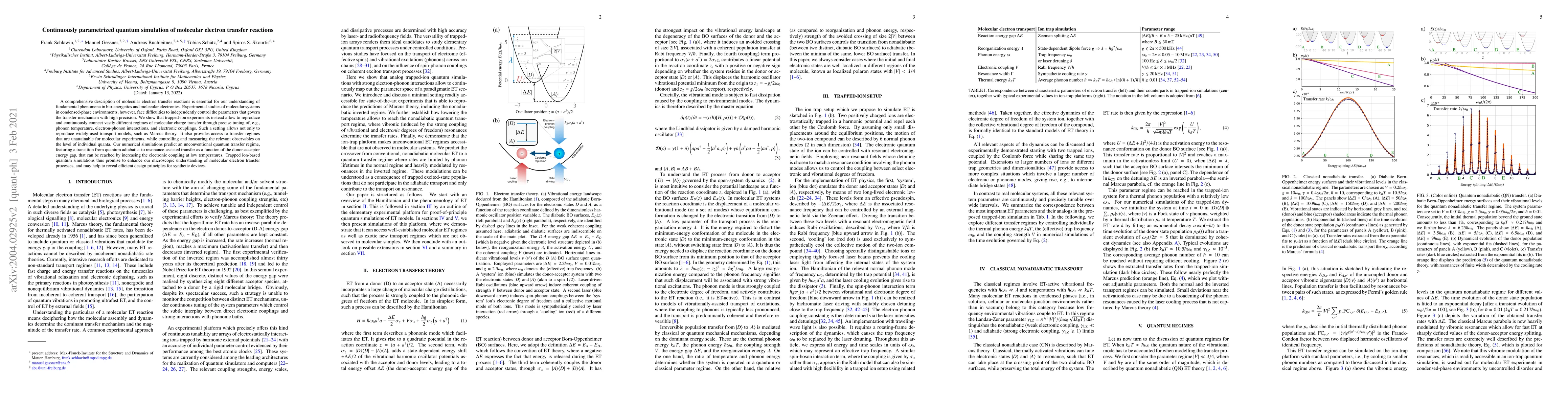 This paper demonstrates how trapped-ion experiments enable precise control over parameters governing molecular electron transfer, allowing for the reproduction of various transfer regimes and prediction of unconventional quantum transfer regimes. This approach enhances our understanding of bio-energetics and molecular electronics, potentially revealing efficient design principles for synthetic devices.