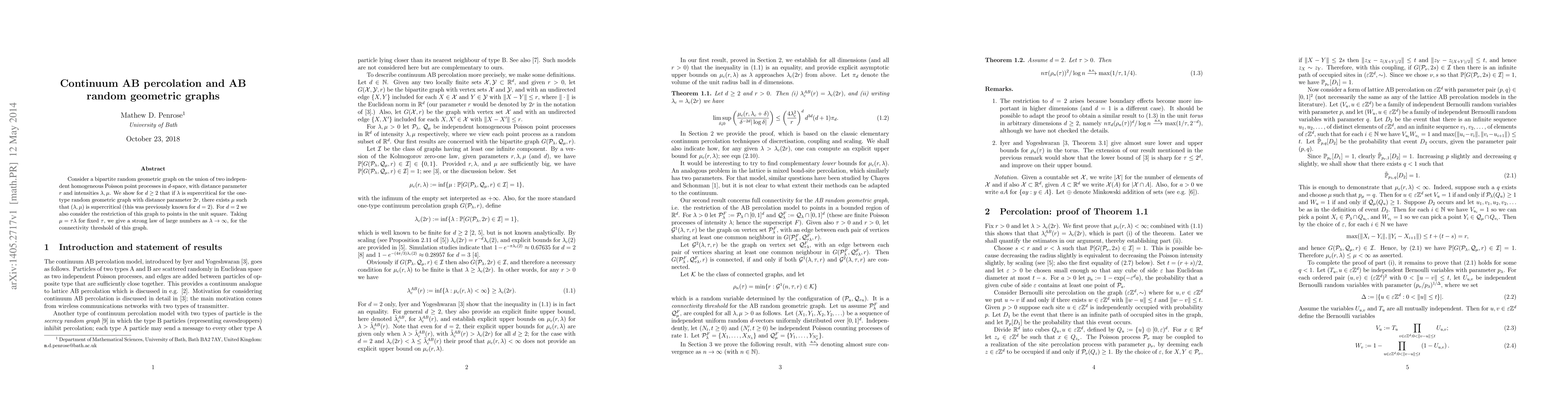 Consider a bipartite random geometric graph on the union of two independent homogeneous Poisson point processes in $d$-space, with distance parameter $r$ and intensities $\lambda,\mu$. We show for $d \geq 2$ that if $\lambda$ is supercritical for the one-type random geometric graph with distance parameter $2r$, there exists $\mu$ such that $(\lambda,\mu)$ is supercritical (this was previously known for $d=2$). For $d=2$ we also consider the restriction of this graph to points in the unit square. Taking $\mu = \tau \lambda$ for fixed $\tau$, we give a strong law of large numbers as $\lambda \to \infty$, for the connectivity threshold of this graph.
