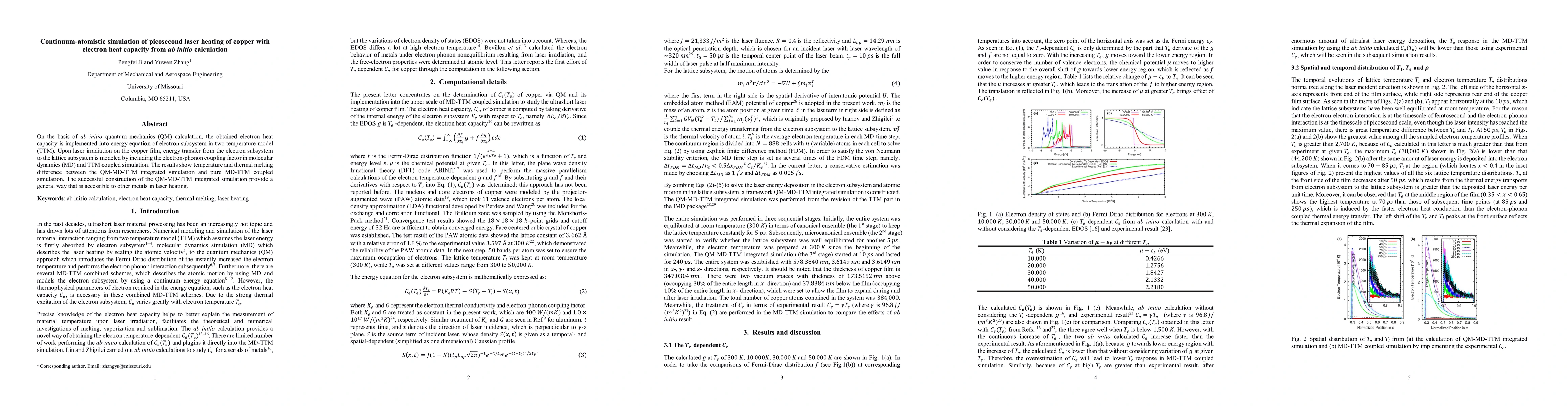 This paper integrates ab initio quantum mechanics calculations with continuum-atomistic simulations to model picosecond laser heating in copper, incorporating electron heat capacity into the two-temperature model (TTM). The study reveals distinct temperature and thermal melting differences compared to traditional simulations, offering a new approach applicable to other metals under laser heating.