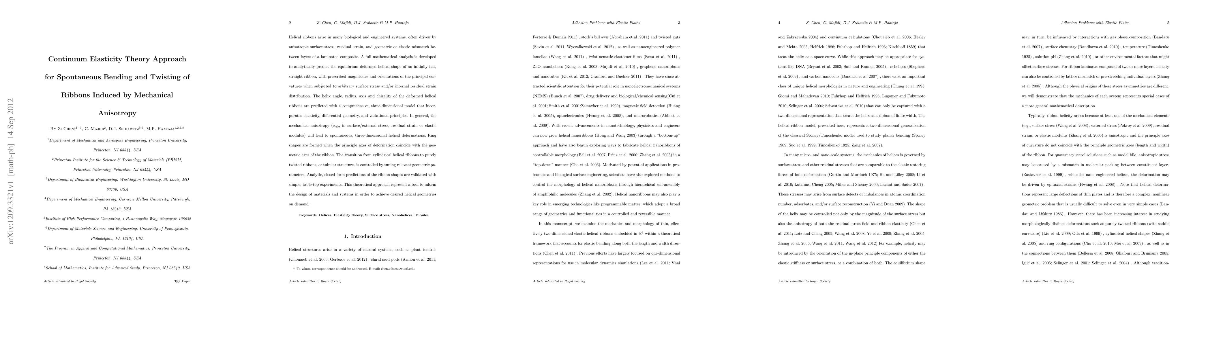 This paper develops a continuum elasticity theory to predict the spontaneous bending and twisting of helical ribbons due to mechanical anisotropy, validated through experiments. The model predicts the helix angle, radius, and chirality of deformed ribbons, offering insights for designing materials with desired helical geometries.