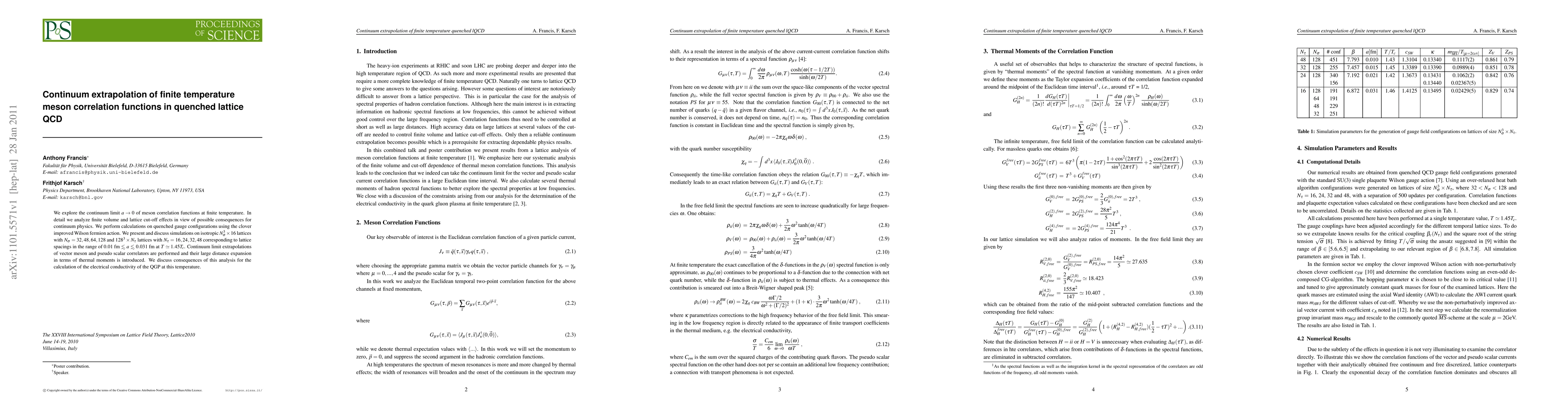 We explore the continuum limit $a\rightarrow 0$ of meson correlation functions at finite temperature. In detail we analyze finite volume and lattice cut-off effects in view of possible consequences for continuum physics. We perform calculations on quenched gauge configurations using the clover improved Wilson fermion action. We present and discuss simulations on isotropic $N_\sigma^3\times 16$ lattices with $N_\sigma=32,48,64,128$ and $128^3 \times N_\tau$ lattices with $N_\tau=16,24,32,48$ corresponding to lattice spacings in the range of $0.01 fm \lsim a \lsim\ 0.031 fm$ at $T\simeq1.45T_c$. Continuum limit extrapolations of vector meson and pseudo scalar correlators are performed and their large distance expansion in terms of thermal moments is introduced. We discuss consequences of this analysis for the calculation of the electrical conductivity of the QGP at this temperature.