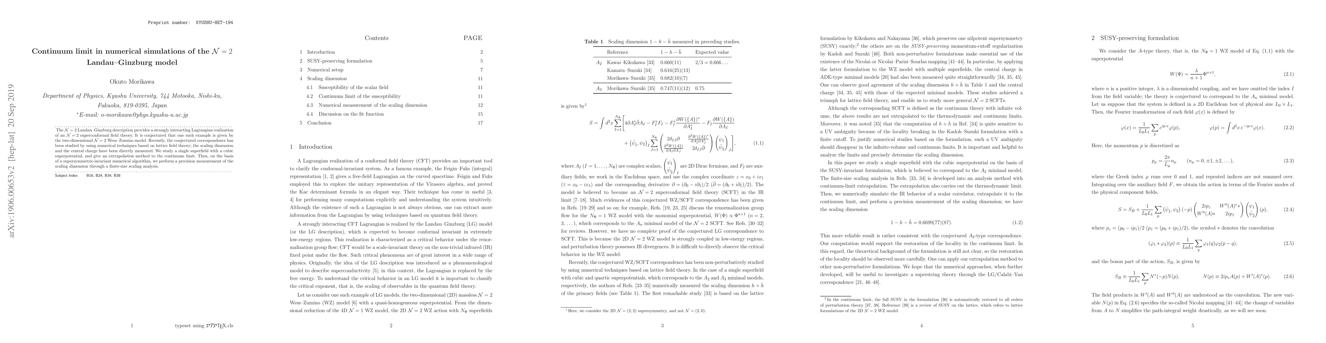 This paper investigates the continuum limit of the $\mathcal{N}=2$ Landau-Ginzburg model using lattice field theory and a supersymmetric-invariant numerical algorithm. It presents an extrapolation method and precise measurement of the scaling dimension and central charge, validating the correspondence between the $\mathcal{N}=2$ Wess-Zumino model and the $\mathcal{N}=2$ superconformal field theory.