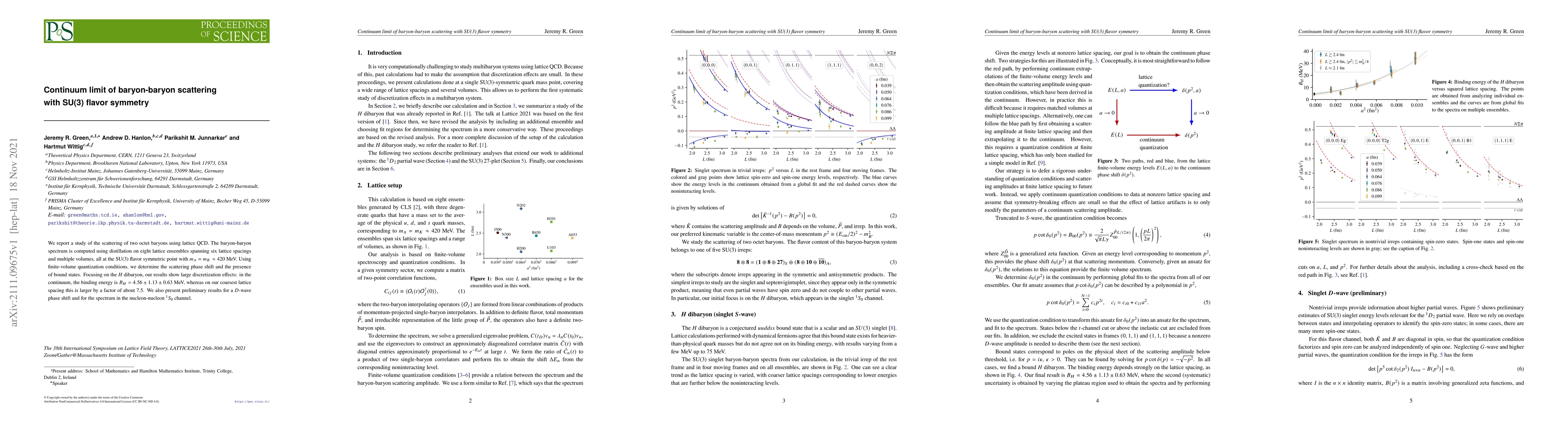 We report a study of the scattering of two octet baryons using lattice QCD. The baryon-baryon spectrum is computed using distillation on eight lattice ensembles spanning six lattice spacings and multiple volumes, all at the SU(3) flavor symmetric point with $m_\pi=m_K\approx 420$ MeV. Using finite-volume quantization conditions, we determine the scattering phase shift and the presence of bound states. Focusing on the $H$ dibaryon, our results show large discretization effects: in the continuum, the binding energy is $B_H=4.56\pm1.13\pm0.63$ MeV, whereas on our coarsest lattice spacing this is larger by a factor of about 7.5. We also present preliminary results for a $D$-wave phase shift and for the spectrum in the nucleon-nucleon ${}^1S_0$ channel.