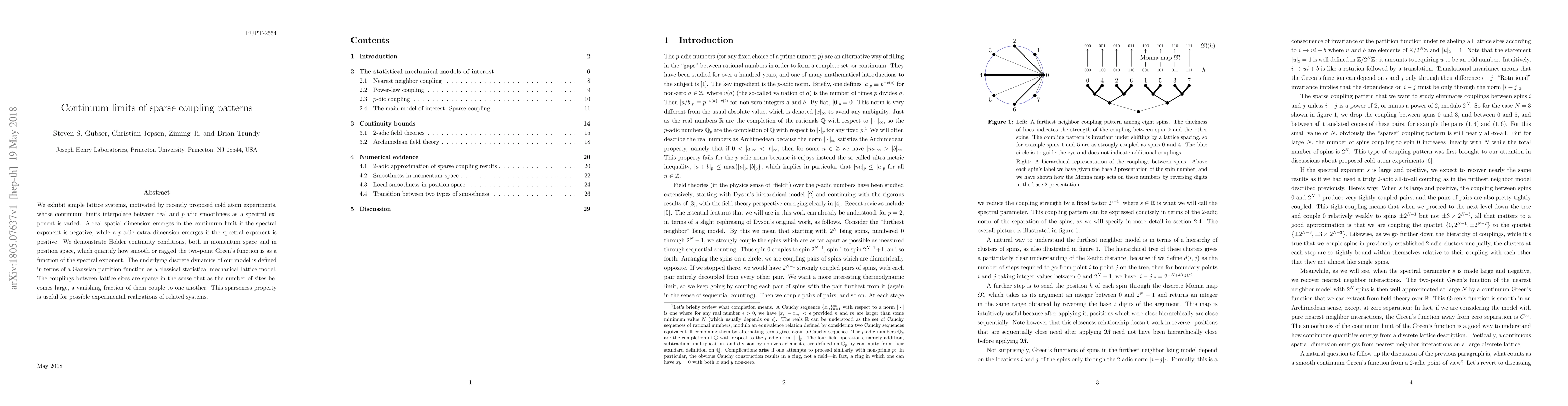 We exhibit simple lattice systems, motivated by recently proposed cold atom experiments, whose continuum limits interpolate between real and $p$-adic smoothness as a spectral exponent is varied. A real spatial dimension emerges in the continuum limit if the spectral exponent is negative, while a $p$-adic extra dimension emerges if the spectral exponent is positive. We demonstrate Holder continuity conditions, both in momentum space and in position space, which quantify how smooth or ragged the two-point Green's function is as a function of the spectral exponent. The underlying discrete dynamics of our model is defined in terms of a Gaussian partition function as a classical statistical mechanical lattice model. The couplings between lattice sites are sparse in the sense that as the number of sites becomes large, a vanishing fraction of them couple to one another. This sparseness property is useful for possible experimental realizations of related systems.
