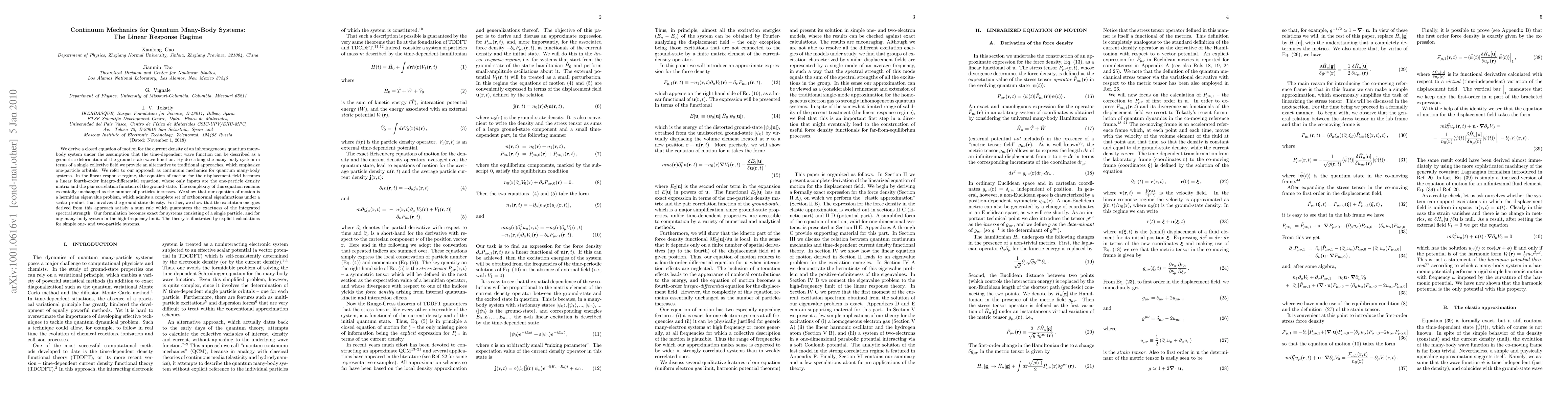 Researchers develop a new approach to understanding quantum many-body systems by describing them as a single collective field, leading to a linear fourth-order equation of motion for the displacement field that accurately captures excitation energies.