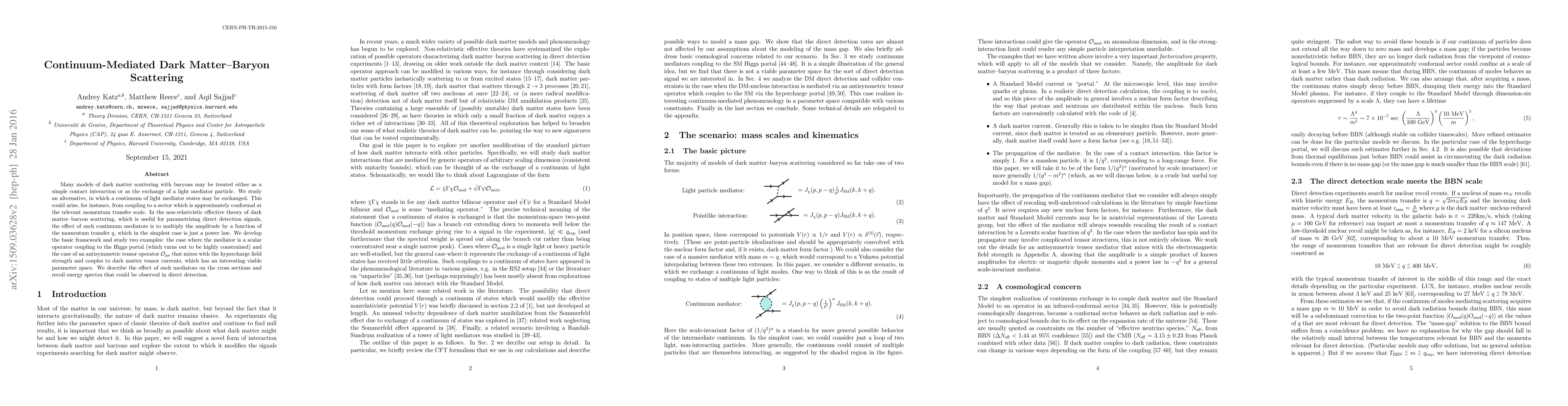 Many models of dark matter scattering with baryons may be treated either as a simple contact interaction or as the exchange of a light mediator particle. We study an alternative, in which a continuum of light mediator states may be exchanged. This could arise, for instance, from coupling to a sector which is approximately conformal at the relevant momentum transfer scale. In the non-relativistic effective theory of dark matter-baryon scattering, which is useful for parametrizing direct detection signals, the effect of such continuum mediators is to multiply the amplitude by a function of the momentum transfer q, which in the simplest case is just a power law. We develop the basic framework and study two examples: the case where the mediator is a scalar operator coupling to the Higgs portal (which turns out to be highly constrained) and the case of an antisymmetric tensor operator ${\cal O}_{\mu \nu}$ that mixes with the hypercharge field strength and couples to dark matter tensor currents, which has an interesting viable parameter space. We describe the effect of such mediators on the cross sections and recoil energy spectra that could be observed in direct detection.