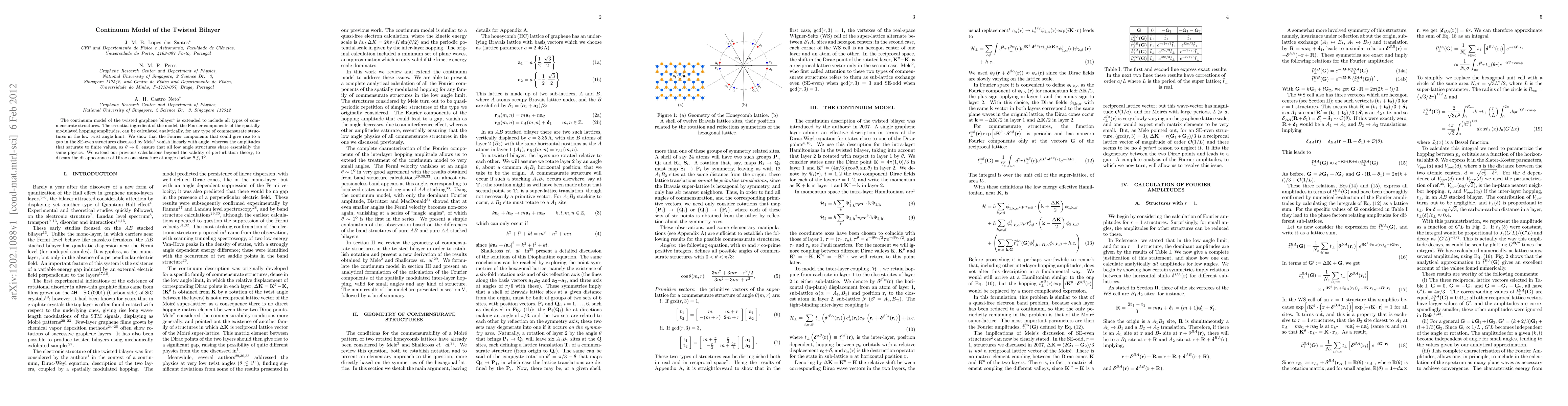 Researchers extended a continuum model of twisted graphene bilayers to include various commensurate structures, finding that certain components vanish at low twist angles, while others lead to similar physics.