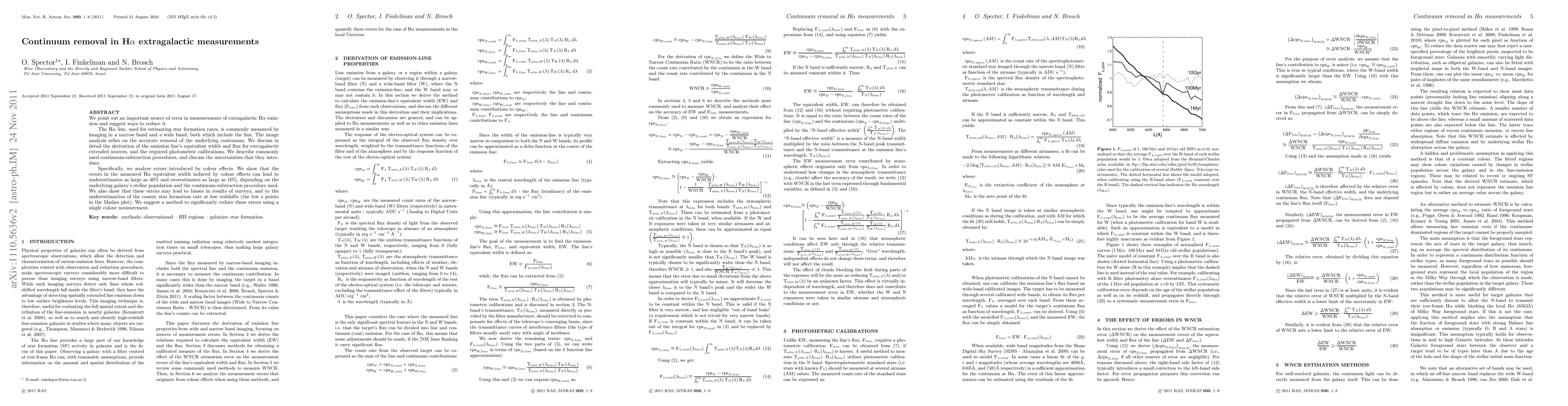 We point out an important source of error in measurements of extragalactic H-alpha emission and suggest ways to reduce it. The H-alpha line, used for estimating star formation rates, is commonly measured by imaging in a narrow band and a wide band, both which include the line. The image analysis relies on the accurate removal of the underlying continuum. We discuss in detail the derivation of the emission line's equivalent width and flux for extragalactic extended sources, and the required photometric calibrations. We describe commonly used continuum-subtraction procedures, and discuss the uncertainties that they introduce. Specifically, we analyse errors introduced by colour effects. We show that the errors in the measured H-alpha equivalent width induced by colour effects can lead to underestimates as large as 40% and overestimates as large as 10%, depending on the underlying galaxy's stellar population and the continuum-subtraction procedure used. We also show that these errors may lead to biases in results of surveys, and to the underestimation of the cosmic star formation rate at low redshifts (the low z points in the Madau plot). We suggest a method to significantly reduce these errors using a single colour measurement.