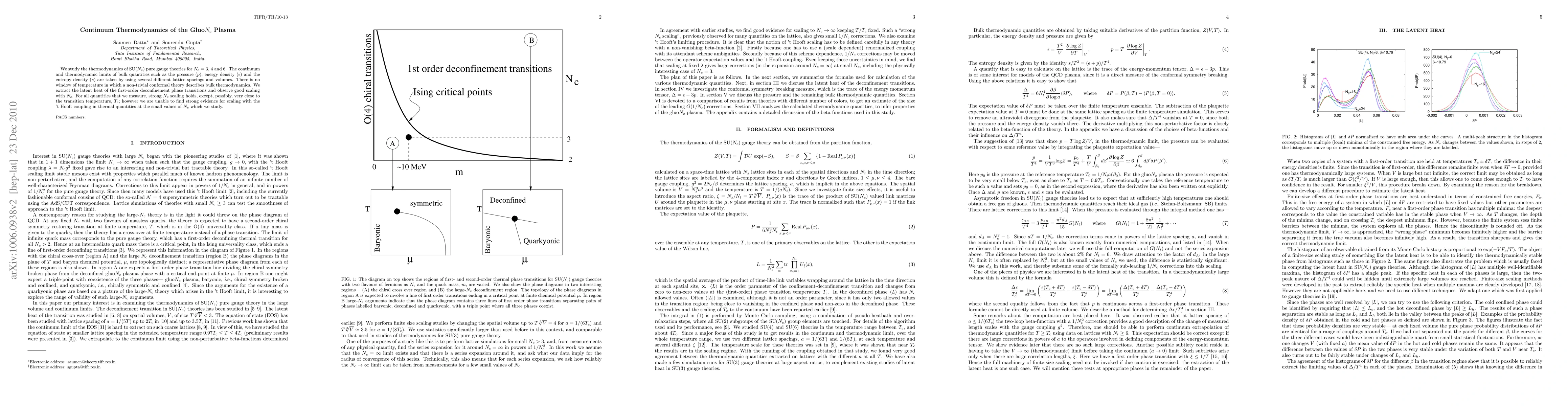 We study the thermodynamics of SU(N_c) pure gauge theories for N_c=3, 4 and 6. The continuum and thermodynamic limits of bulk quantities such as the pressure, energy density and the entropy density are taken by using several different lattice spacings and volumes. There is no window of temperature in which a non-trivial conformal theory describes bulk thermodynamics. We extract the latent heat of the first-order deconfinement phase transitions and observe good scaling with N_c. For all quantities that we measure, strong N_c scaling holds, except, possibly, very close to the transition temperature, T_c; however we are unable to find strong evidence for scaling with the 't Hooft coupling in thermal quantities at the small values of N_c which we study.