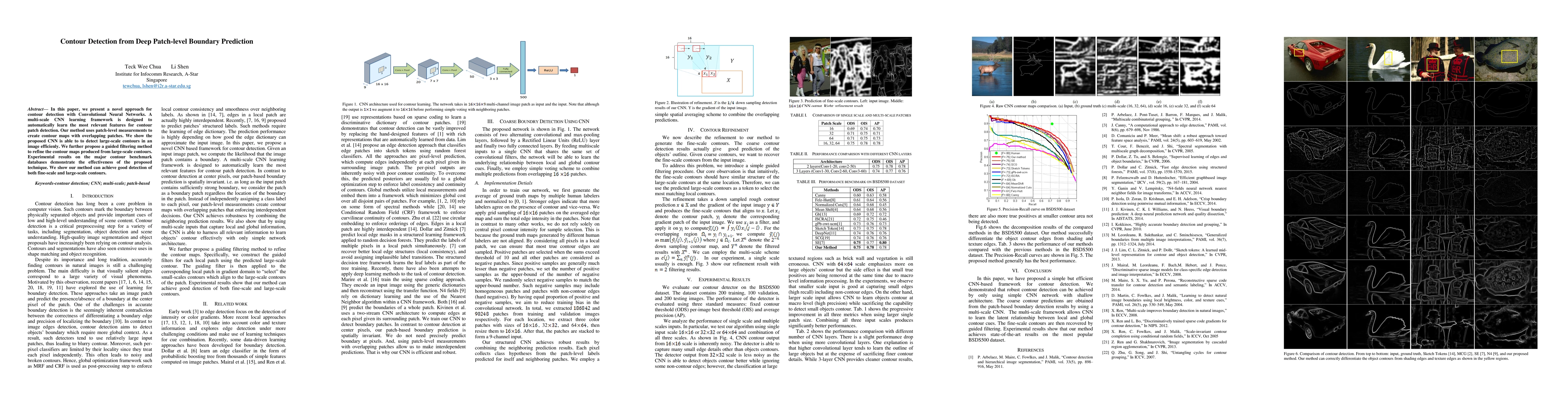 In this paper, we present a novel approach for contour detection with Convolutional Neural Networks. A multi-scale CNN learning framework is designed to automatically learn the most relevant features for contour patch detection. Our method uses patch-level measurements to create contour maps with overlapping patches. We show the proposed CNN is able to to detect large-scale contours in an image efficienly. We further propose a guided filtering method to refine the contour maps produced from large-scale contours. Experimental results on the major contour benchmark databases demonstrate the effectiveness of the proposed technique. We show our method can achieve good detection of both fine-scale and large-scale contours.