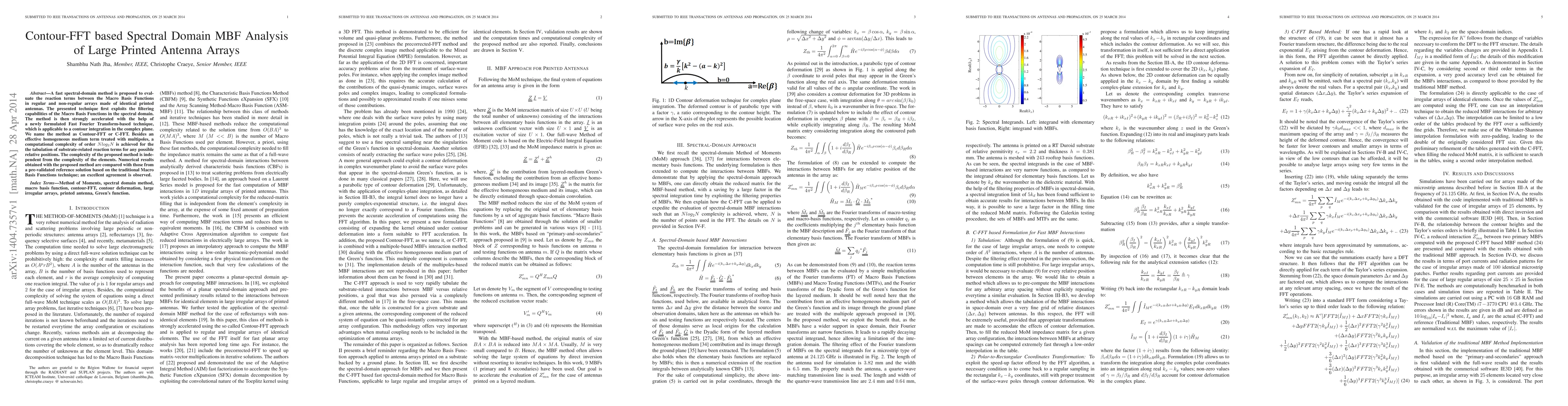 A fast spectral-domain method is proposed to evaluate the reaction terms between the Macro Basis Functions in regular and non-regular arrays made of identical printed antennas. The presented technique first exploits the filtering capabilities of the Macro Basis Functions in the spectral domain. The method is then strongly accelerated with the help of a newly formulated Fast Fourier Transform-based technique, which is applicable to a contour integration in the complex plane. We name the method as Contour-FFT or C-FFT. Besides an effective homogeneous medium term treated with multipoles, a computational complexity of order N log_2 N is achieved for the the tabulation of substrate-related reaction terms for any possible relative positions. The complexity of the proposed method is independent from the complexity of the elements. Numerical results obtained with the proposed method are compared with those from a pre-validated reference solution based on the traditional Macro Basis Functions technique; an excellent agreement is observed.