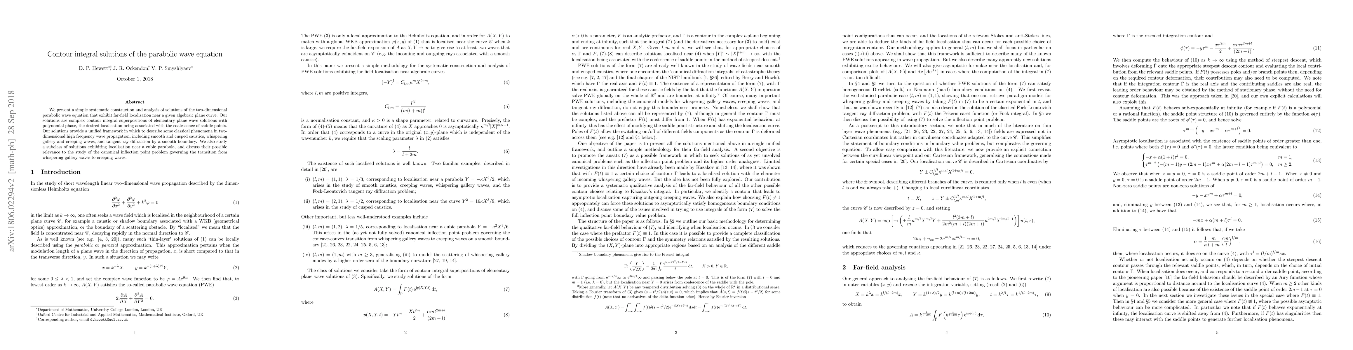 We present a simple systematic construction and analysis of solutions of the two-dimensional parabolic wave equation that exhibit far-field localisation near a given algebraic plane curve. Our solutions are complex contour integral superpositions of elementary plane wave solutions with polynomial phase, the desired localisation being associated with the coalescence of saddle points. Our solutions provide a unified framework in which to describe some classical phenomena in two-dimensional high frequency wave propagation, including smooth and cusped caustics, whispering gallery and creeping waves, and tangent ray diffraction by a smooth boundary. We also study a subclass of solutions exhibiting localisation near a cubic parabola, and discuss their possible relevance to the study of the canonical inflection point problem governing the transition from whispering gallery waves to creeping waves.
