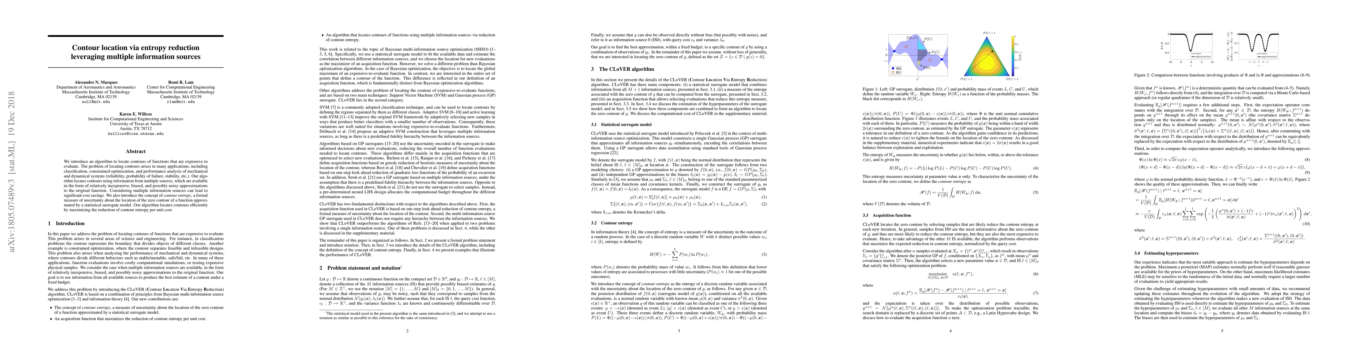 This paper presents an algorithm for efficiently locating contours of expensive-to-evaluate functions by leveraging multiple, relatively inexpensive, and noisy approximations. It introduces contour entropy as a measure of uncertainty and optimizes contour location by maximizing entropy reduction per unit cost.
