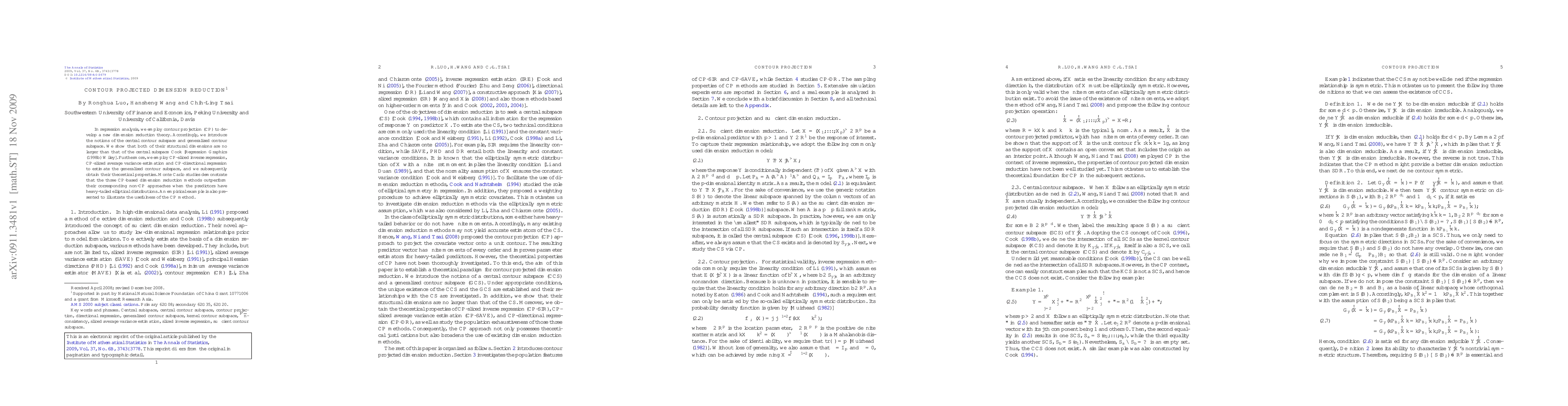 This paper proposes contour projection (CP) for dimension reduction in regression analysis, introducing central and generalized contour subspaces. CP-based methods outperform traditional approaches under heavy-tailed distributions, as shown through Monte Carlo studies and an empirical example.