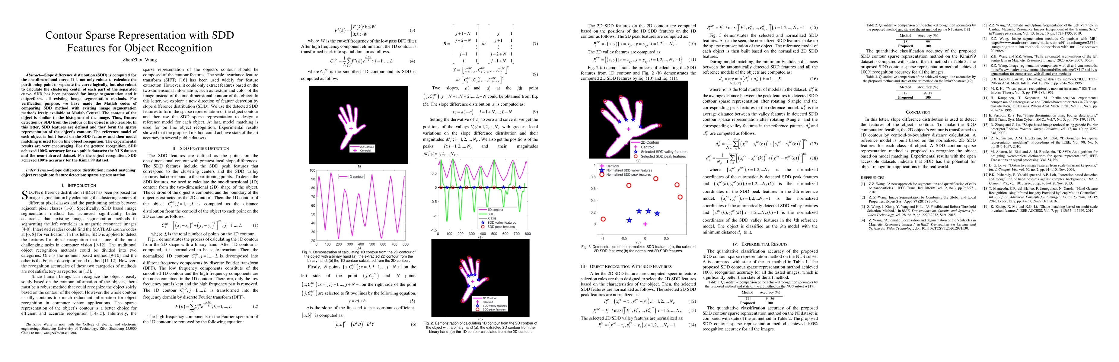 Researchers developed a method called Contour Sparse Representation with SDD Features for Object Recognition, achieving 100% accuracy in gesture recognition and object recognition on two public datasets.