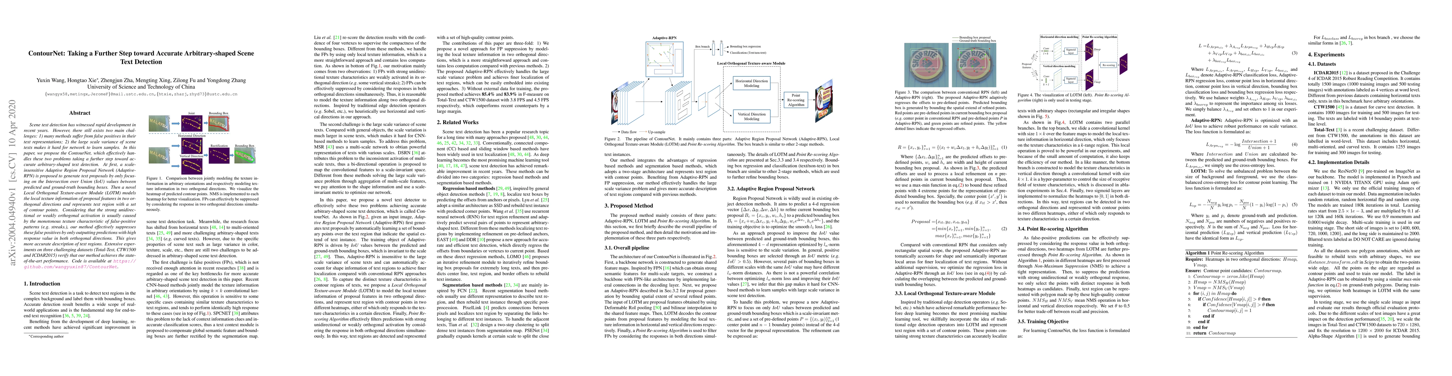 ContourNet proposes an Adaptive Region Proposal Network and a Local Orthogonal Texture-aware Module to address false positives and large scale variance in arbitrary-shaped scene text detection, achieving state-of-the-art performance on three datasets.