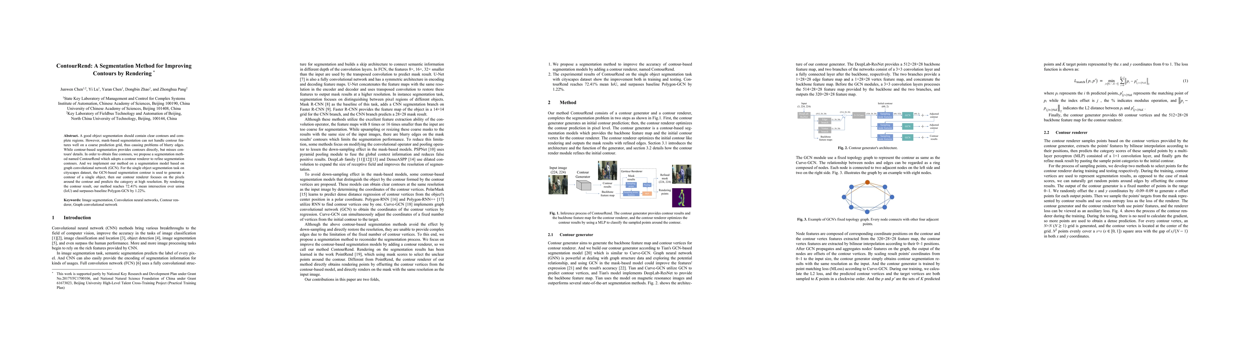A good object segmentation should contain clear contours and complete regions. However, mask-based segmentation can not handle contour features well on a coarse prediction grid, thus causing problems of blurry edges. While contour-based segmentation provides contours directly, but misses contours' details. In order to obtain fine contours, we propose a segmentation method named ContourRend which adopts a contour renderer to refine segmentation contours. And we implement our method on a segmentation model based on graph convolutional network (GCN). For the single object segmentation task on cityscapes dataset, the GCN-based segmentation con-tour is used to generate a contour of a single object, then our contour renderer focuses on the pixels around the contour and predicts the category at high resolution. By rendering the contour result, our method reaches 72.41% mean intersection over union (IoU) and surpasses baseline Polygon-GCN by 1.22%.