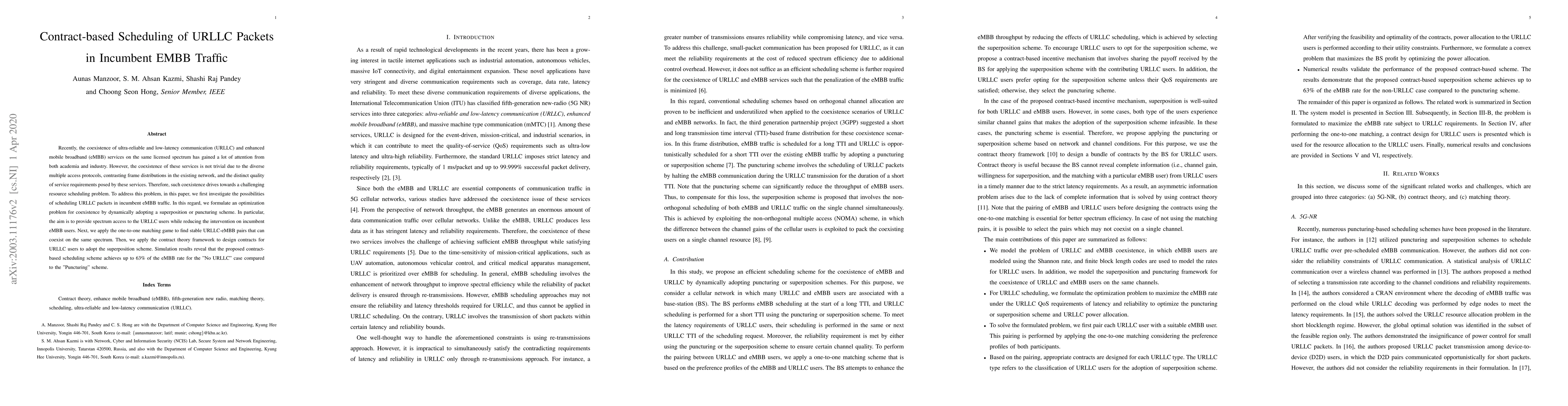 This paper investigates scheduling ultra-reliable and low-latency communication (URLLC) packets amidst incumbent enhanced mobile broadband (eMBB) traffic, formulating an optimization problem to minimize interference. It employs contract theory to design contracts for URLLC users, achieving up to 63% of the eMBB rate compared to the puncturing scheme.