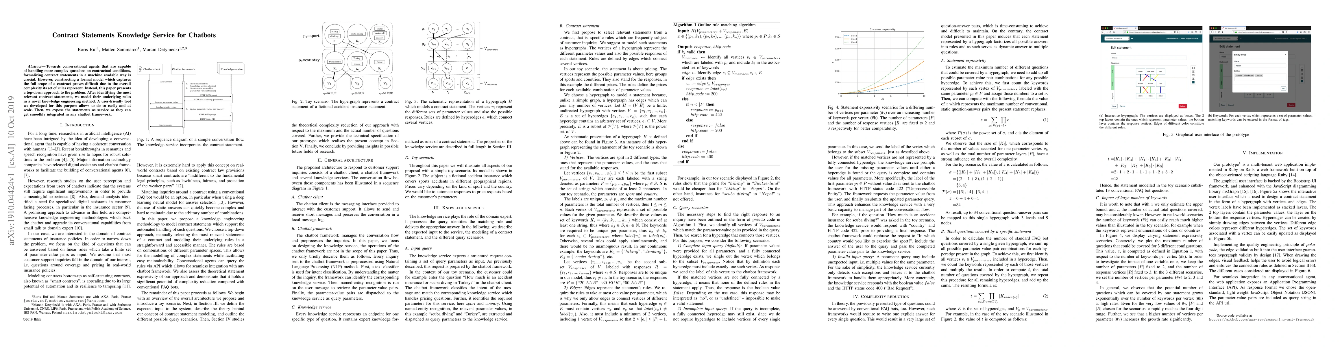 Towards conversational agents that are capable of handling more complex questions on contractual conditions, formalizing contract statements in a machine readable way is crucial. However, constructing a formal model which captures the full scope of a contract proves difficult due to the overall complexity its set of rules represent. Instead, this paper presents a top-down approach to the problem. After identifying the most relevant contract statements, we model their underlying rules in a novel knowledge engineering method. A user-friendly tool we developed for this purpose allows to do so easily and at scale. Then, we expose the statements as service so they can get smoothly integrated in any chatbot framework.