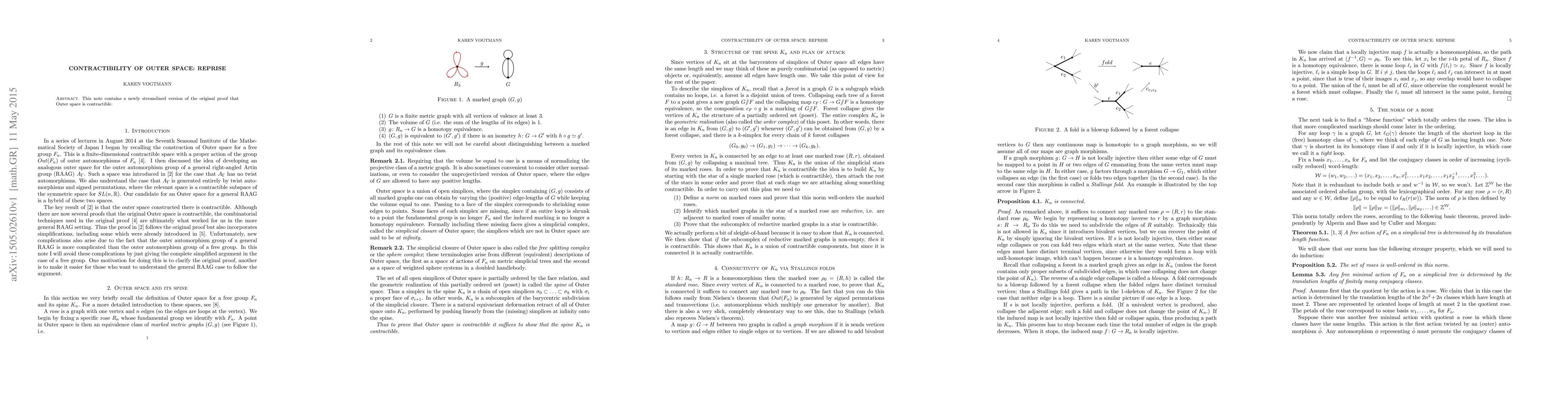 This note contains a newly streamlined version of the original proof that Outer space is contractible.