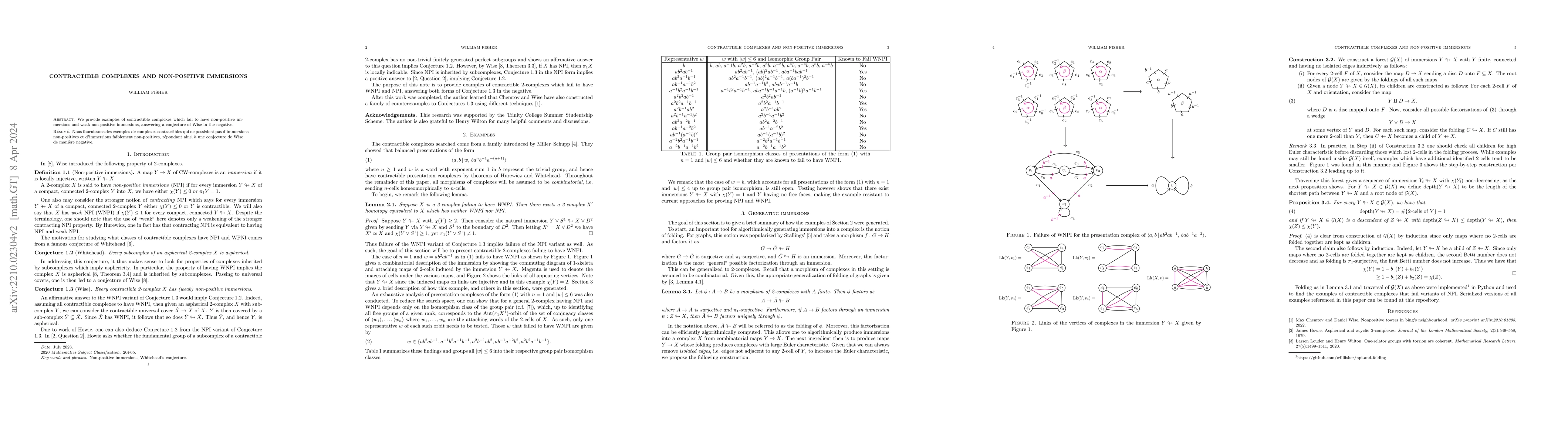 Summary: This paper presents examples of contractible complexes that do not support non-positive or weak non-positive immersions, thereby disproving a conjecture by Wise regarding such immersions.