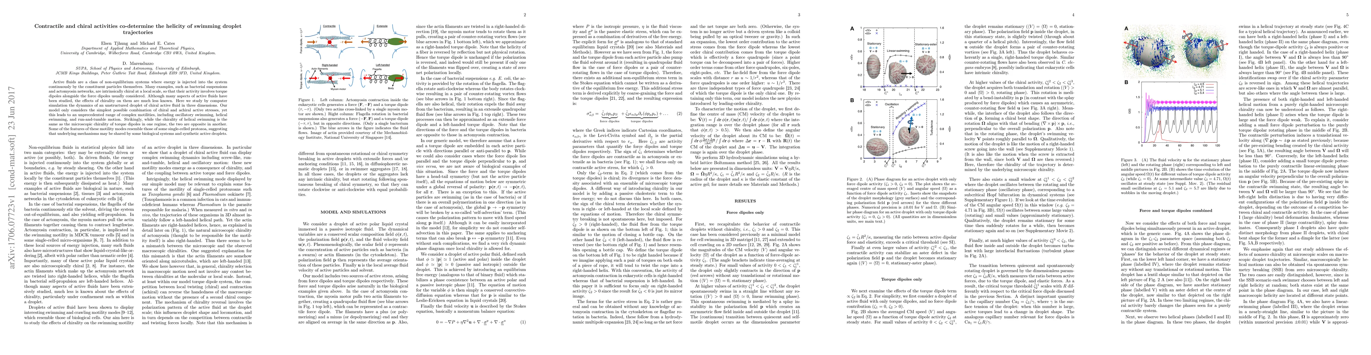 Active fluids are a class of non-equilibrium systems where energy is injected into the system continuously by the constituent particles themselves. Many examples, such as bacterial suspensions and actomyosin networks, are intrinsically chiral at a local scale, so that their activity involves torque dipoles alongside the force dipoles usually considered. Although many aspects of active fluids have been studied, the effects of chirality on them are much less known. Here we study by computer simulation the dynamics of an unstructured droplet of chiral active fluid in three dimensions. Our model only considers the simplest possible combination of chiral and achiral active stresses, yet this leads to an unprecedented range of complex motilities, including oscillatory swimming, helical swimming, and run-and-tumble motion. Strikingly, while the chirality of helical swimming is the same as the microscopic chirality of torque dipoles in one regime, the two are opposite in another. Some of the features of these motility modes resemble those of some single-celled protozoa, suggesting that underlying mechanisms may be shared by some biological systems and synthetic active droplets.
