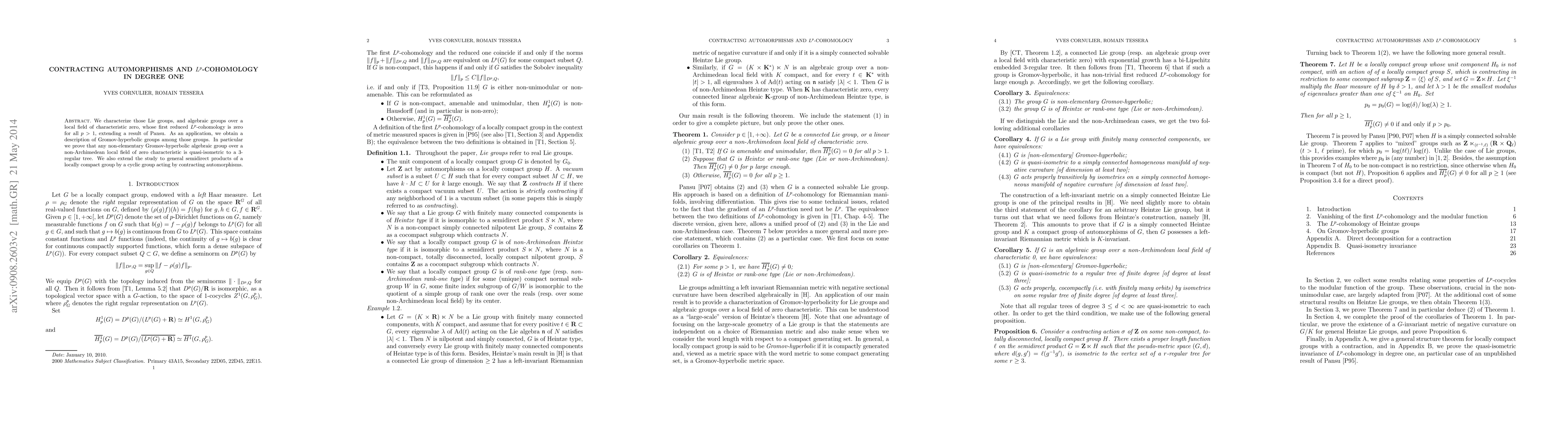 We characterize those Lie groups, and algebraic groups over a local field of characteristic zero, whose first reduced L^p-cohomology is zero for all p>1, extending a result of Pansu. As an application, we obtain a description of Gromov-hyperbolic groups among those groups. In particular we prove that any non-elementary Gromov-hyperbolic algebraic group over a non-Archimedean local field of zero characteristic is quasi-isometric to a 3-regular tree. We also extend the study to semidirect products of a general locally compact group by a cyclic group acting by contracting automorphisms.