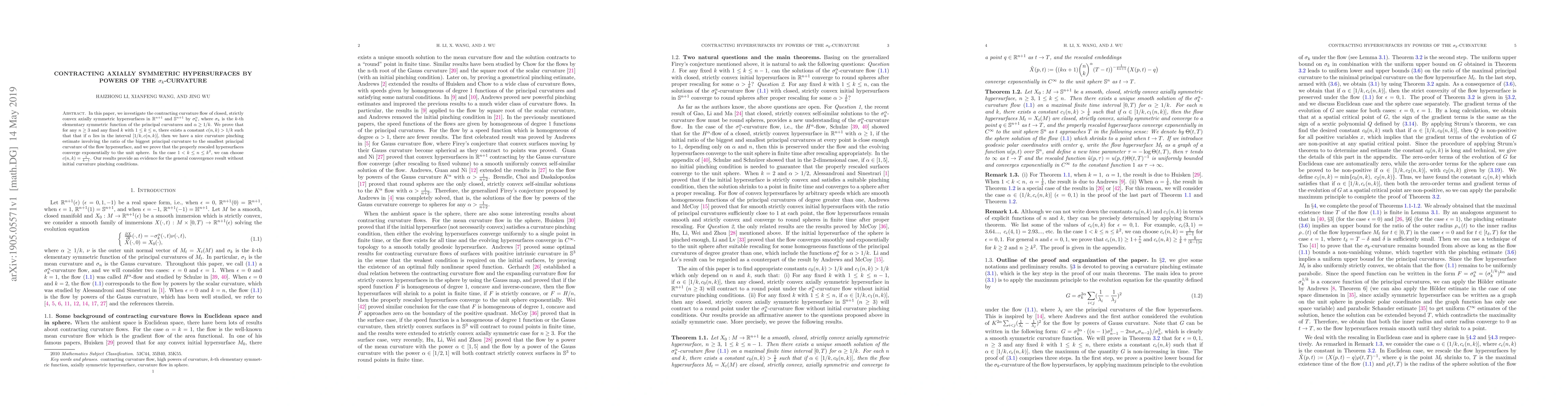 elementary symmetric function of the principal curvatures and $\alpha\ge 1/k$.