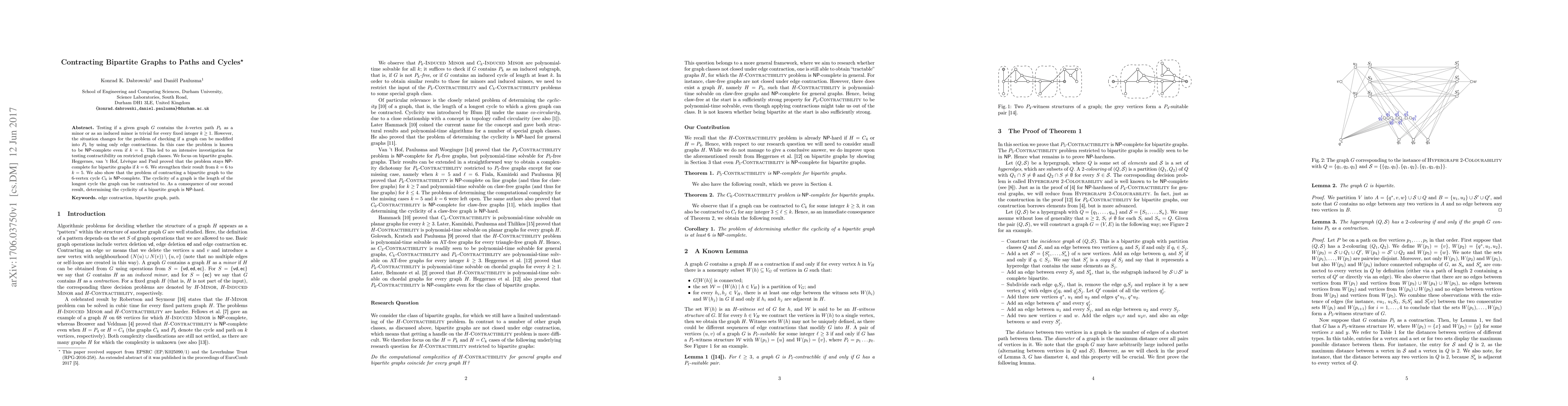 Researchers prove that contracting bipartite graphs to paths and cycles is NP-complete for certain values of k, with implications for determining the cyclicity of bipartite graphs.