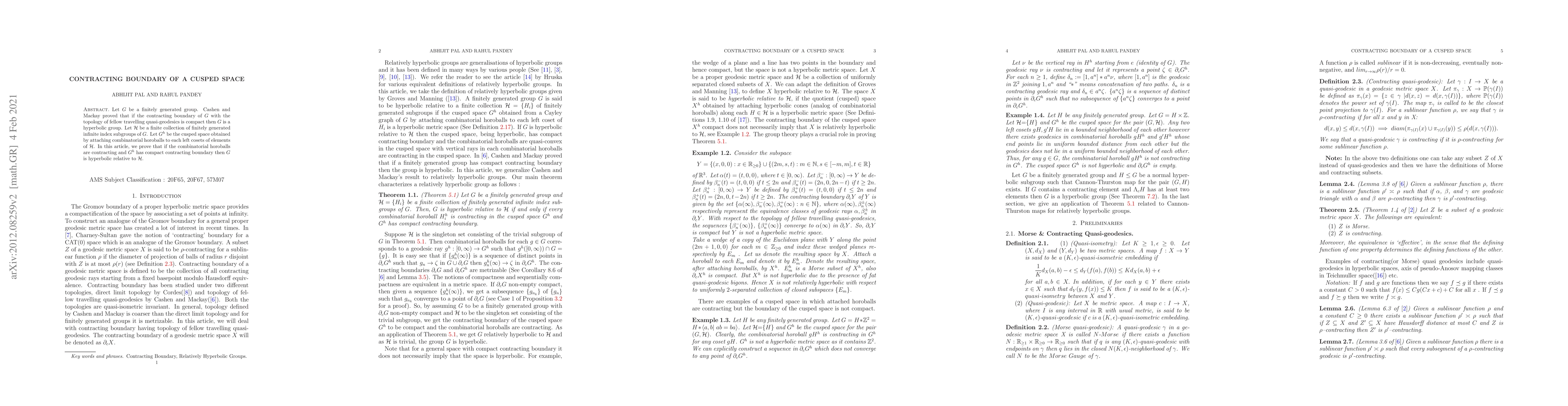 Let $G$ be a finitely generated group. Cashen and Mackay proved that if the contracting boundary of $G$ with the topology of fellow travelling quasi-geodesics is compact then $G$ is a hyperbolic group. Let $\mathcal{H}$ be a finite collection of finitely generated infinite index subgroups of $G$. Let $G^h$ be the cusped space obtained by attaching combinatorial horoballs to each left cosets of elements of $\mathcal {H}$. In this article, we prove that if the combinatorial horoballs are contracting and $G^h$ has compact contracting boundary then $G$ is hyperbolic relative to $\mathcal{H}$.