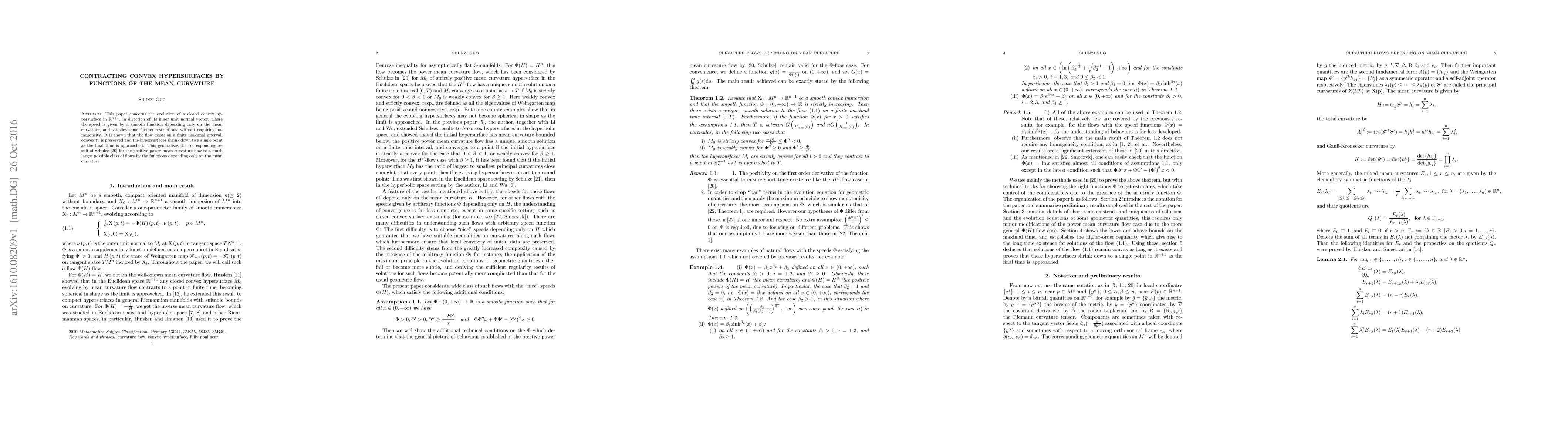 This paper concerns the evolution of a closed convex hypersurface in ${\mathbb{R}}^{n+1}$, in direction of its inner unit normal vector, where the speed is given by a smooth function depending only on the mean curvature, and satisfies some further restrictions, without requiring homogeneity. It is shown that the flow exists on a finite maximal interval, convexity is preserved and the hypersurfaces shrink down to a single point as the final time is approached. This result covers and generalises the corresponding result of Schulze \cite{Sch05} for the positive power mean curvature flow to a much larger possible class of flows by the functions depending only on the mean curvature.