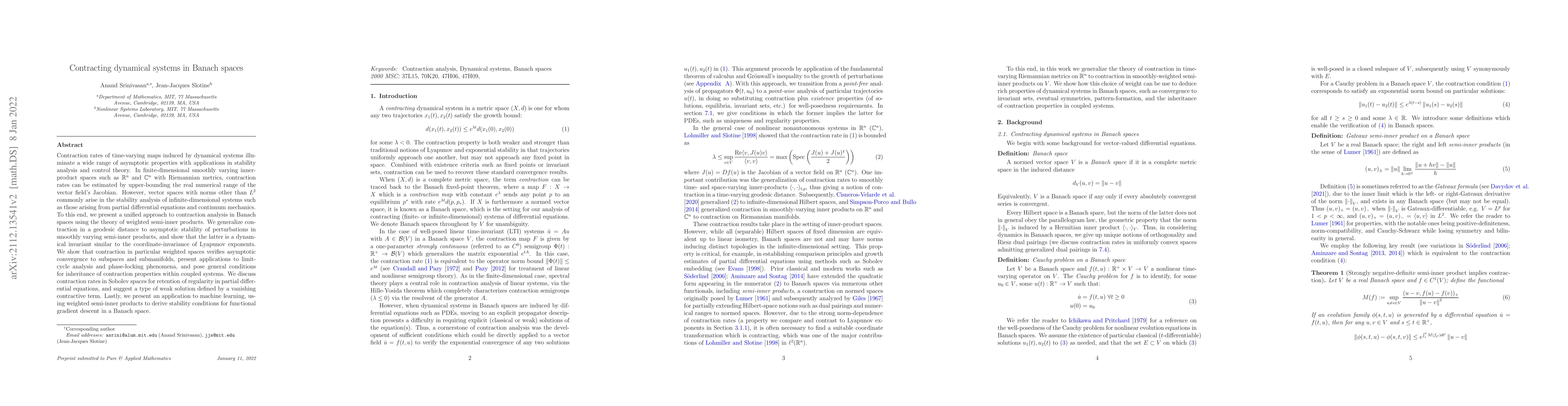 This paper develops a unified framework for analyzing contraction rates in Banach spaces, extending methods from finite-dimensional spaces to infinite-dimensional systems. It introduces weighted semi-inner products to generalize contraction analysis, demonstrating applications in stability, control theory, and machine learning.