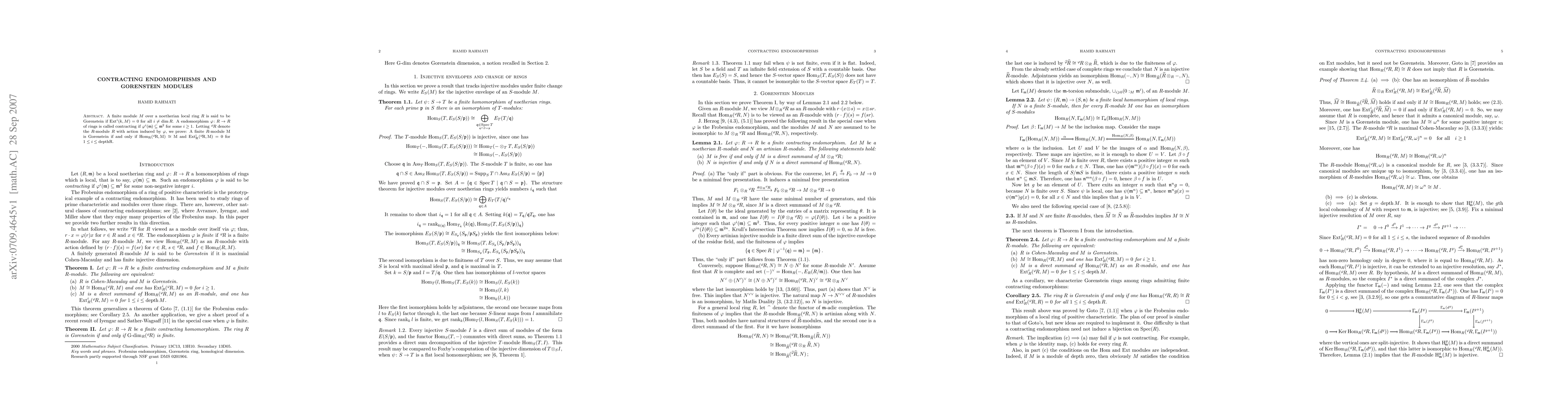 Summary: This paper characterizes Gorenstein modules for local rings with finite contracting endomorphisms, providing a detailed analysis of their structural properties. The study reveals significant implications for module theory and commutative algebra.