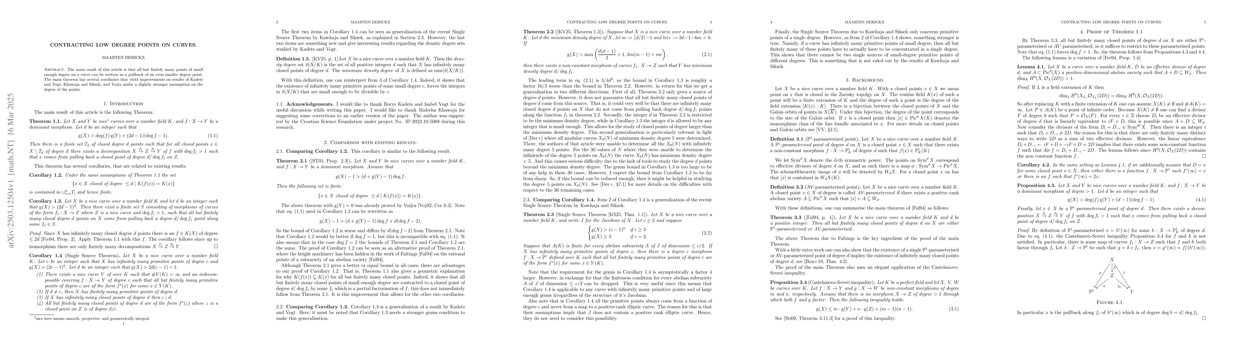 The research methodology involves analyzing points of small degree on curves, employing pullback techniques to demonstrate that all but finitely many such points can be expressed as a pullback of a smaller degree point.