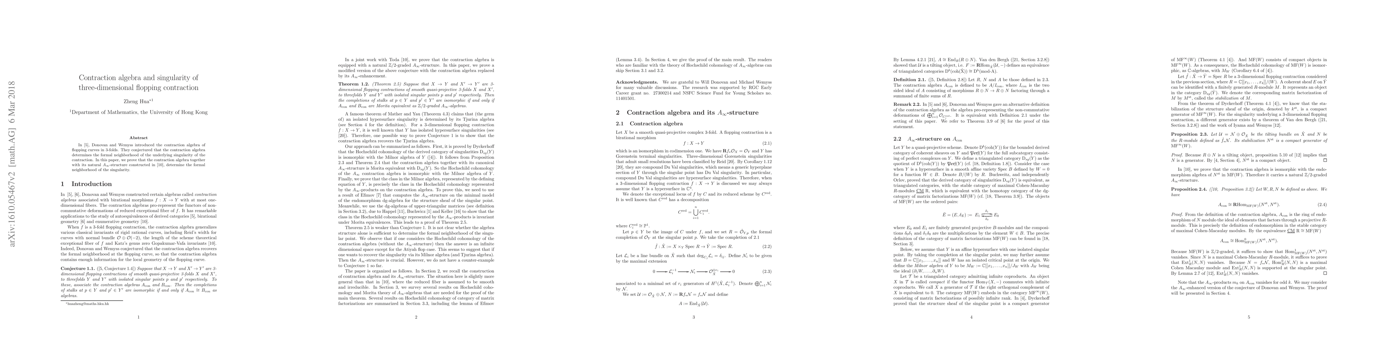 This paper proves that the contraction algebra, along with its natural $A_\infty$-structure, determines the formal neighborhood of the singularity associated with a three-dimensional flopping contraction, supporting the conjecture by Donovan and Wemyss.