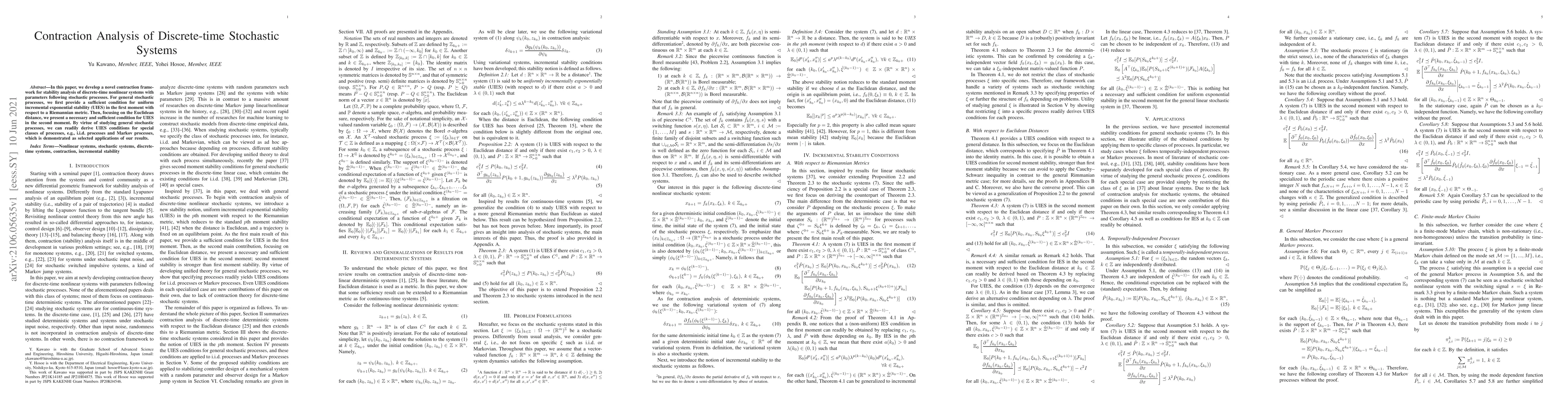 This paper introduces a new contraction framework for analyzing the stability of discrete-time nonlinear systems with stochastic parameters. It provides sufficient conditions for uniform incremental exponential stability in the first moment and necessary-sufficient conditions for the second moment, with applications to i.i.d. and Markov processes.