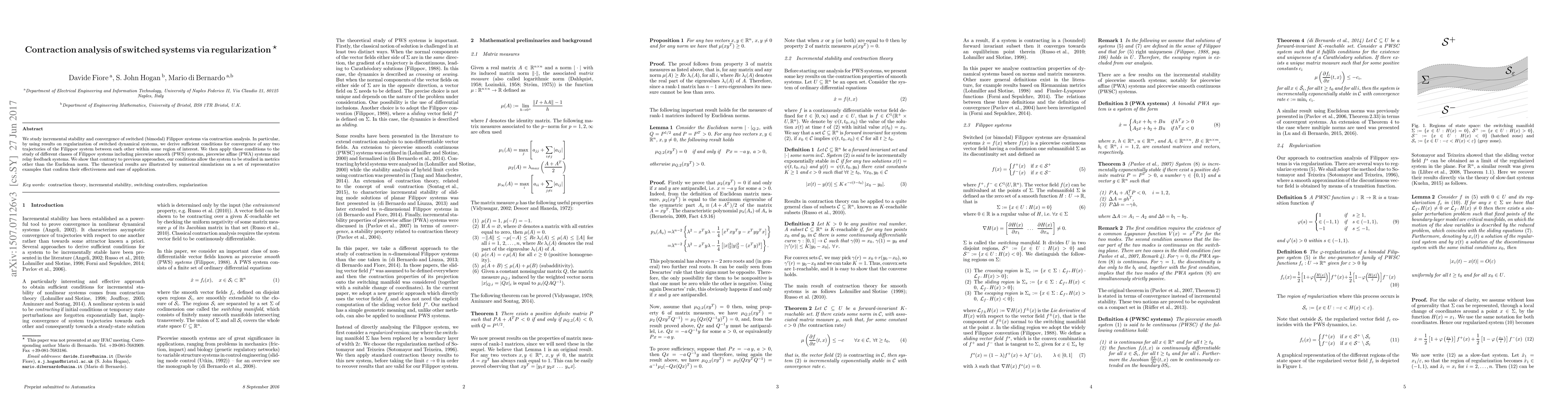 This paper investigates incremental stability and convergence in switched Filippov systems using contraction analysis and regularization techniques. It derives conditions for convergence in various metrics and applies these to PWS, PWA, and relay feedback systems, demonstrating effectiveness through numerical simulations.