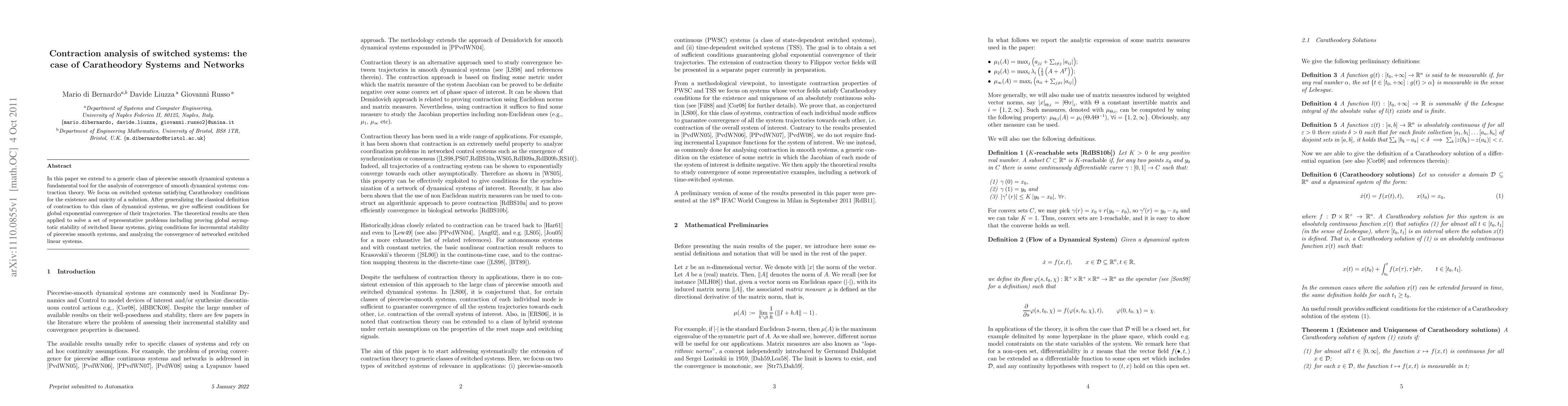 This paper extends contraction theory to piecewise smooth dynamical systems, specifically focusing on switched systems under Caratheodory conditions. It generalizes the definition of contraction and provides conditions for global exponential convergence, applying the results to demonstrate stability in switched linear systems, piecewise smooth systems, and networked systems.
