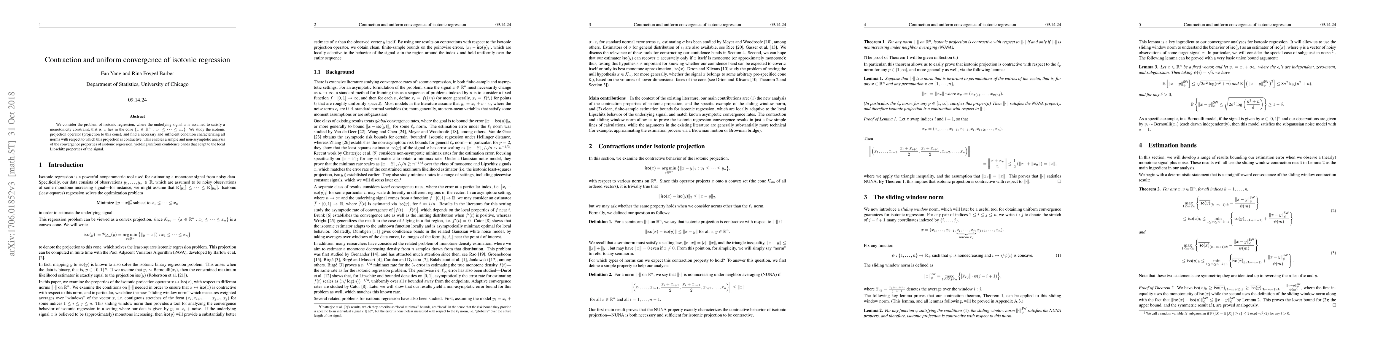 This paper investigates the isotonic regression problem under monotonicity constraints, identifying norms under which the isotonic projection operator is contractive. It provides a non-asymptotic analysis of the convergence properties, leading to uniform confidence bands that adjust to the signal's local Lipschitz characteristics.