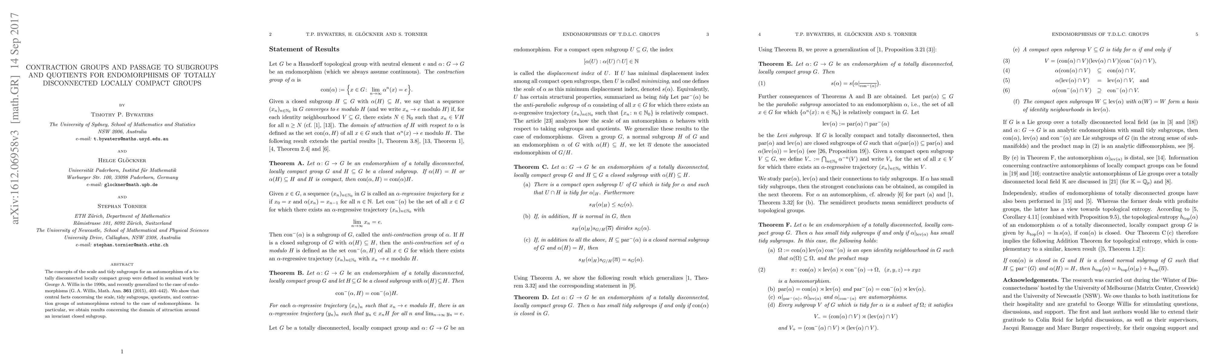 The concepts of the scale and tidy subgroups for an automorphism of a totally disconnected locally compact group were defined in seminal work by George A. Willis in the 1990s, and recently generalized to the case of endomorphisms (G. A. Willis, Math. Ann. 361 (2015), 403--442). We show that central facts concerning the scale, tidy subgroups, quotients, and contraction groups of automorphisms extend to the case of endomorphisms. In particular, we obtain results concerning the domain of attraction around an invariant closed subgroup.