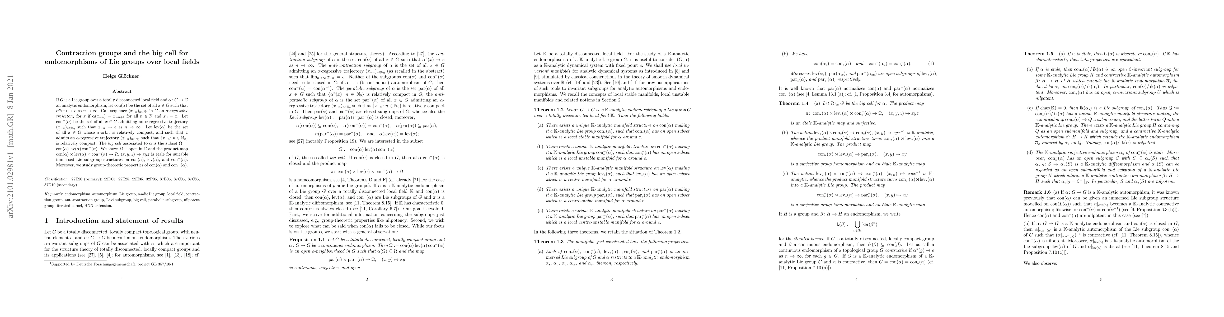 This paper investigates the structure of contraction groups and the big cell for endomorphisms in Lie groups over local fields. It establishes that the big cell, formed by products of contraction, Levi, and anti-contraction groups, is open in the group and the mapping from these subgroups to the big cell is étale.
