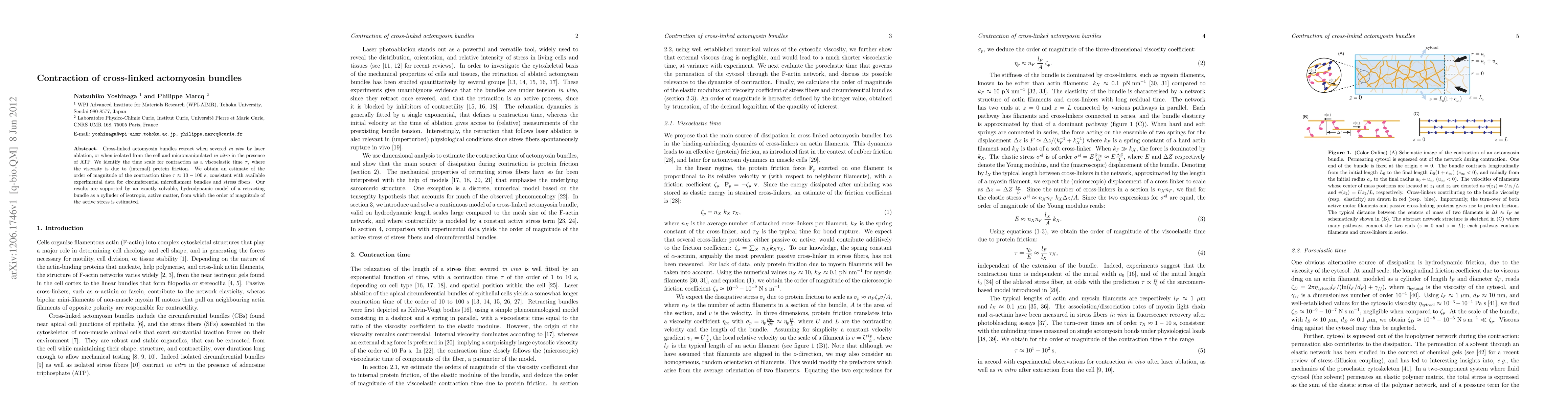 This paper investigates the contraction dynamics of cross-linked actomyosin bundles, identifying a viscoelastic time scale (tau) for contraction due to internal protein friction, with an estimated contraction time of 10-100 seconds. The findings are corroborated by a hydrodynamic model of active matter.