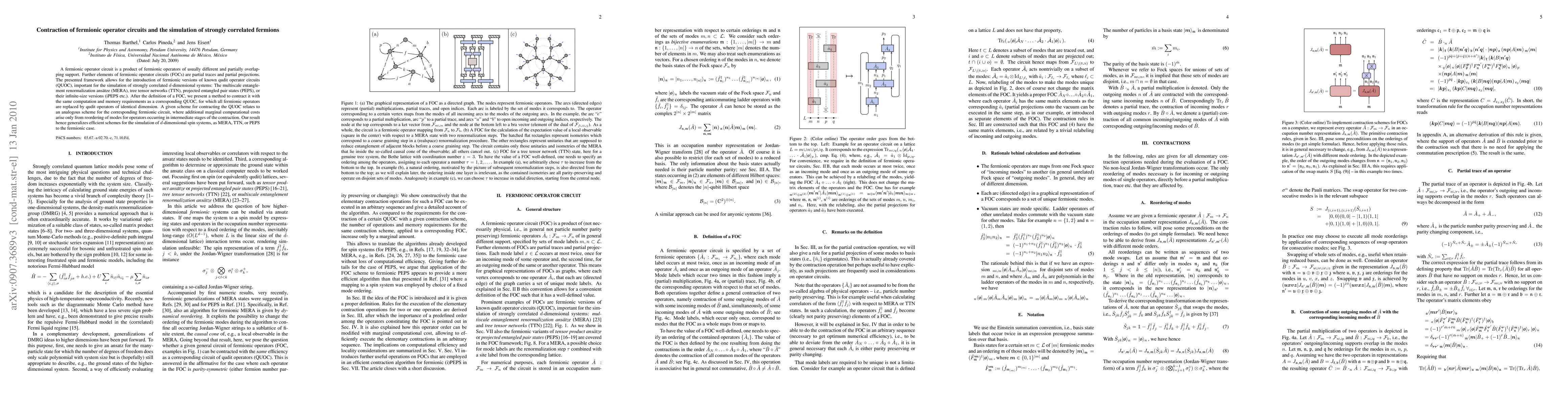 This paper introduces a framework for simulating strongly correlated fermions using fermionic operator circuits, generalizing efficient spin system simulation methods like MERA and PEPS. It presents a contraction method for fermionic circuits that maintains computational efficiency comparable to their qudit counterparts, enabling effective simulation of d-dimensional fermionic systems.